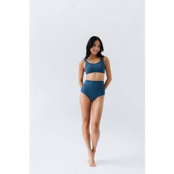 Hang loose in our Shaka top. Self lined sporty tankini top with criss cross back detail and adjustable straps for a custom fit. Hits at natural waist.   Made in California.  Size Guide