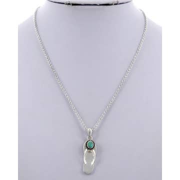 15" to 20" Long, Tiny 4mm Navajo Bead Necklace, 10mm Turquoise Pendant * Natural stone may vary in size, color or shape * 15" long necklace & 5" extender * 4mm navajo bead necklace * 10mm turquoise on alloy metal, antique silver plate * 12 grams weight * Nickel, Lead & Chrome free