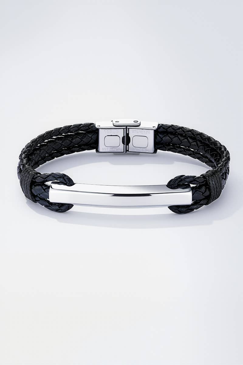 Leather and stainless steel bracelet. Water-resistant and does not tarnish. Guaranteed nickel-free, cadmium-free, lead salt-free.