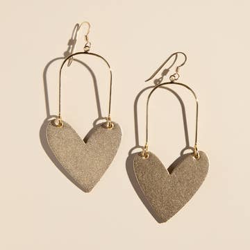 Make a bold statement with the Tuscan Shimmer Quinn, featuring a lightweight leather heart on a huggie earring.