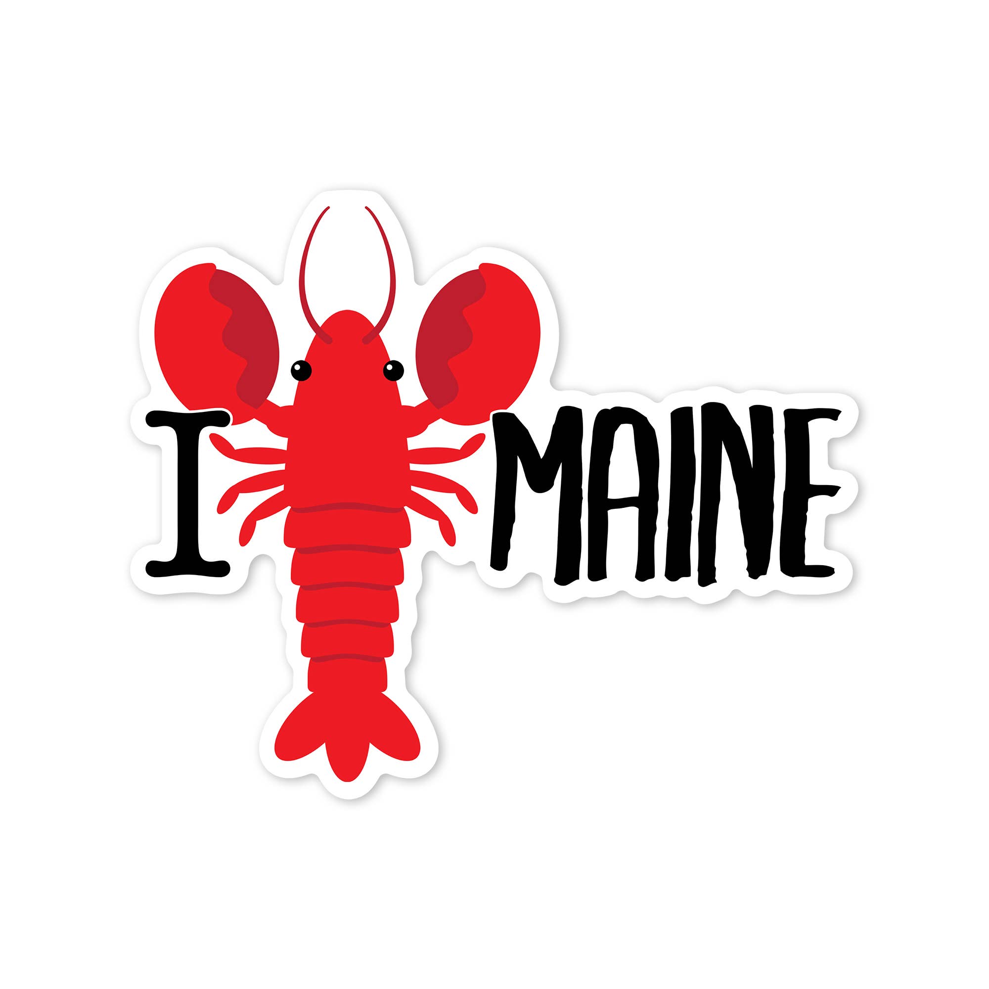 Maine lobster sticker -- Designed by hand in Maine -- Approximately 3 inches in size -- White background -- For indoor use (not waterproof)