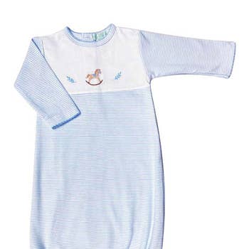 Our classic Knotted Gown is now available in a two piece set with the matching Baby Beanie from our Rainbow collection. This knotted gown allows for easy diaper changes at night with an open tie at the bottom. Made of 100% organic Egyptian cotton, this layette set is perfect for bringing baby home. Keep your little one cozy and comfortable with the gown and beanie, while also supporting sustainable and environmentally-friendly practices. * Fold-over hand mitts sewn into sleeve to keep newborn babies protected from scratches. Size: 0-3m