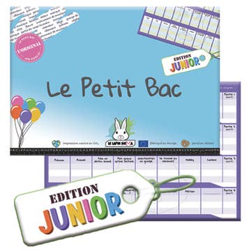 🚀 THE PETIT BAC by LE LAPIN SIGMA is an A4 ready-to-play pad with 50 identical detachable pages protected by a sturdy cover 👨 🎓 😎 Set of 40 Petit Bac games distributed as follows (possibility to agree on any other distribution of the 40 games): * 14 Junior editions * 10 Classic editions * 6 Wacky editions * 6 Genius editions * 4 18+ editions 🎁 CULT GIFT IDEA - To give for a birthday, Christmas, Easter, a long trip, etc. - Everyone loves the baccalaureate game - Laughter guaranteed! 🚀 🌿 MADE IN FRANCE 🇫🇷 following an eco-friendly approach ♻ 🤓 READY TO USE 🔠 On the back of the cover, find the game rules and an alphabet ruler to choose your letters without cheating - about 200 games per pad! 🎁 🏆 WACKY EDITION VOTED COCORICO TOY OF 2022 in the "FOR PARTYING" category by the sales teams of toy specialist stores (FCJPE) 🐔