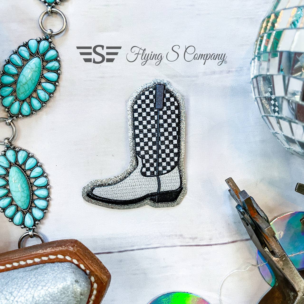 Step up your game-day style with our Checkered Baseball Iron-On Patch. Featuring bold red stitching over a black-and-white checkered background, this embroidered patch is perfect for baseball moms, fans, or players who want a unique twist on classic sports style. Crafted with a durable iron-on backing, this patch applies easily to jackets, backpacks, caps, or denim. Whether you’re cheering from the stands or adding a sporty touch to your everyday look, this baseball patch brings personality and flair to any outfit. Details: Embroidered baseball design with red stitches and checkered fill High-quality iron-on backing for quick application Great for jackets, hats, backpacks, and more Perfect for baseball moms, fans, and players Unique mix of sporty and trendy fashion Approximately 3 in tall x 3 in wide. Embroidered details with glitter border and iron on backing. HANDWASH ONLY Heat application by heatpress only. 350°F. Heavy pressure. Caps and non washable style garments: place patch and press for 30 seconds This is an exclusive design of Flying S! Please do not use images without permission, all designs are copyright of Flying S Company.