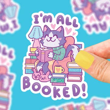 Made from high quality waterproof clear material. 3.5 x 3.5 inches Perfect for your laptop, sketchbook or water bottle. Text: "No Thanks, I'm Busy" Sometimes all you want to do is stay at home with your cat, a nice cup of tea and a good book. Let everyone know that you are not, in fact, available to do anything and are very very busy tonight. Stickers are sold individually, with no extra packaging unless they are part of a sticker pack.