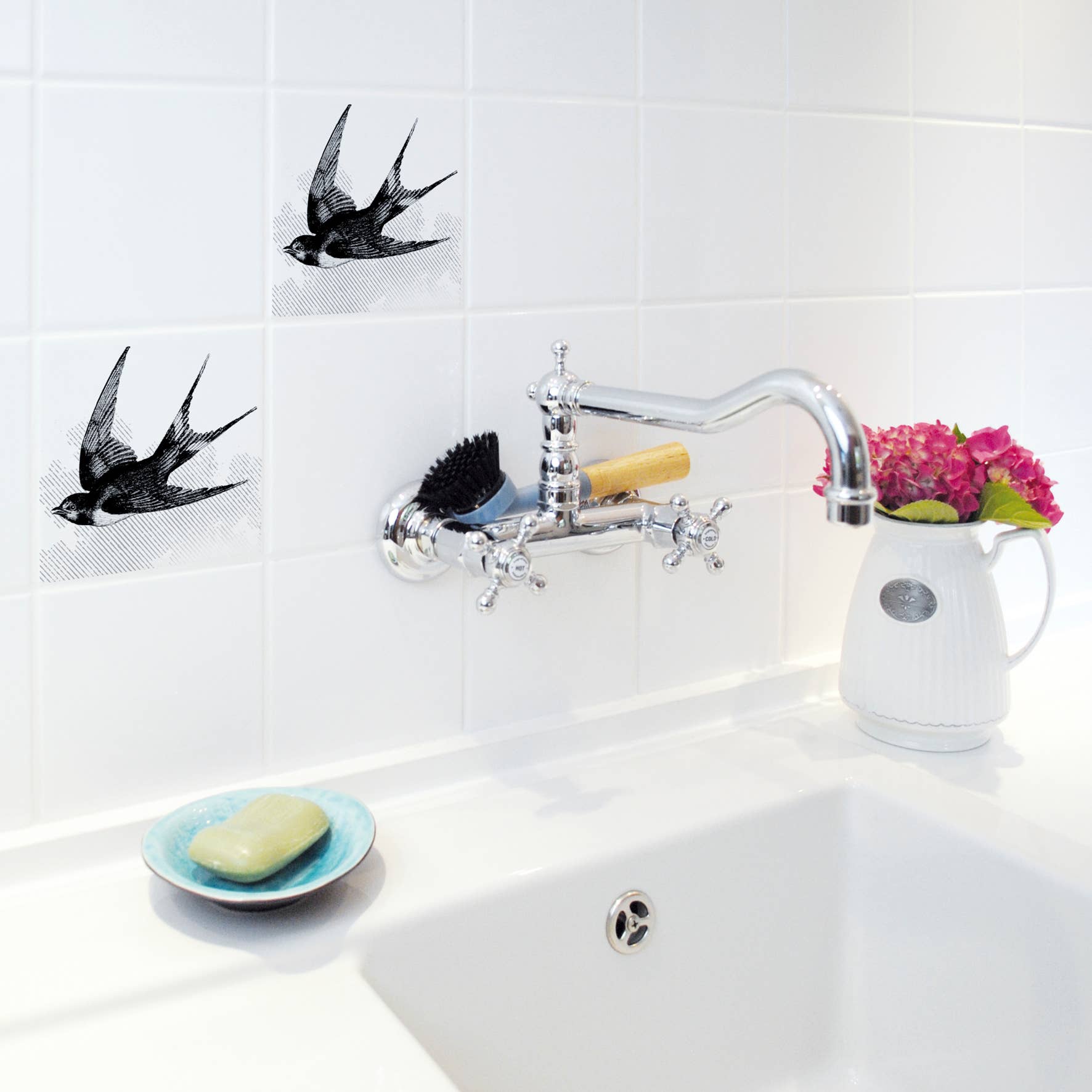 High quality bathroom and kitchen tile stickers. The decors easily give tiles a new and unique look within a few minutes. Design and production are 100% Made In Germany, they are assembled by Lebenshilfe in Schleswig Holstein. Contents: Water-repellent PVC stickers (printed with UV inks and finished with glossy UV varnish), including multilingual adhesive instructions