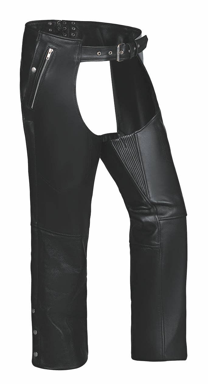 Unik Premium leather chaps designed for durability and style. With reinforced stitching, silver hardware, and an adjustable fit, these chaps are ideal for bikers. Made in Pakistan. Key Features: * Lined: Below the knee for comfort * Reinforced stitching to prevent fraying * Chap extender for adjustable fit * Sizes available: XS-5XL