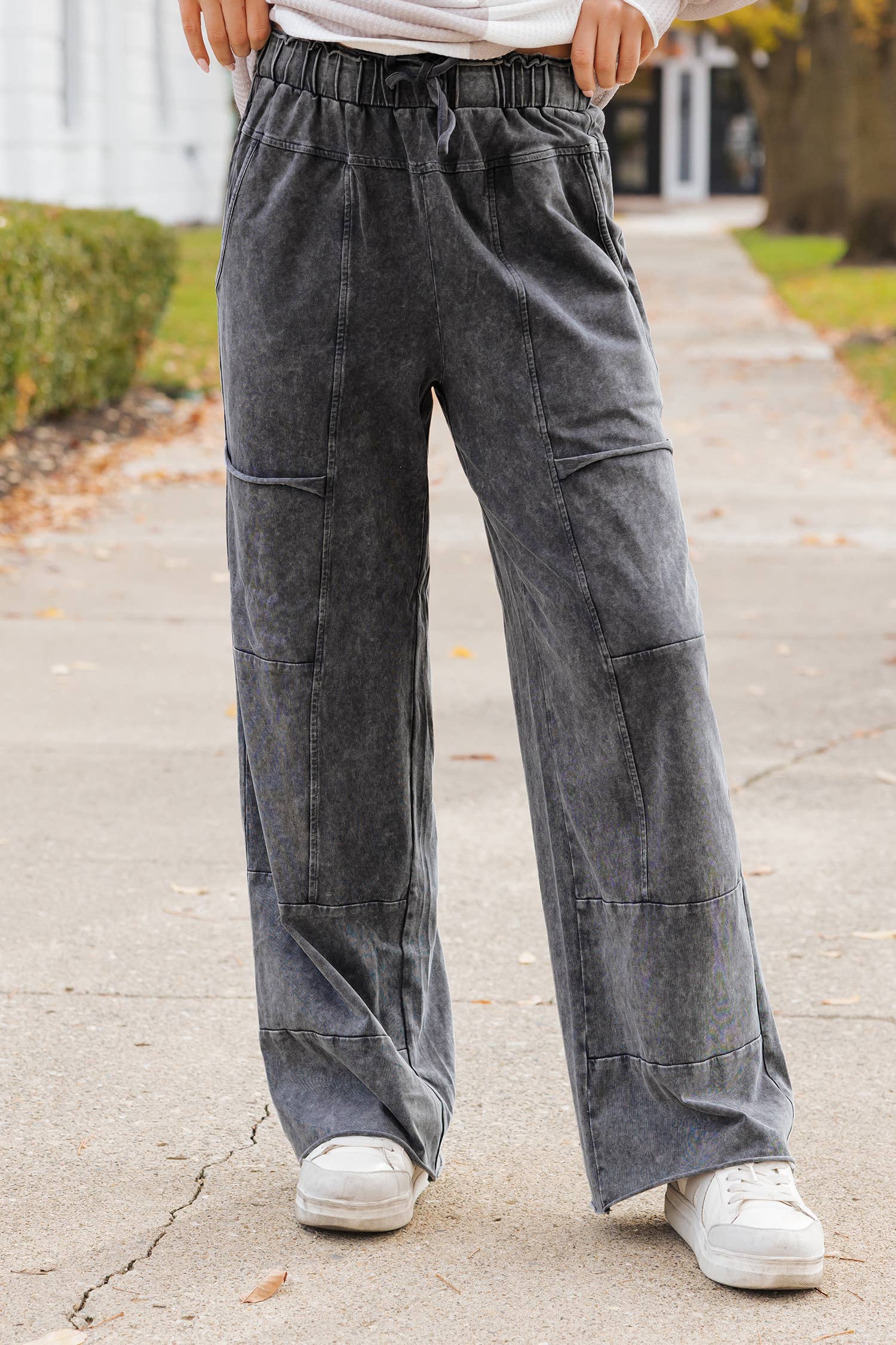 Cotton Stonewash Patch Wide Leg Cargo Pant D1239