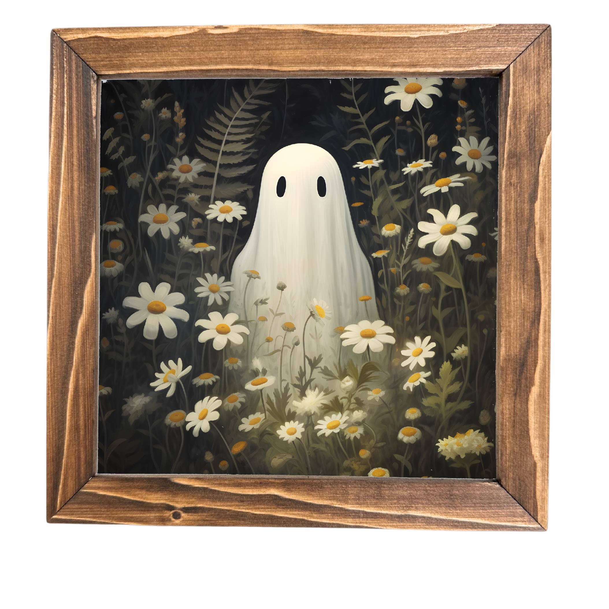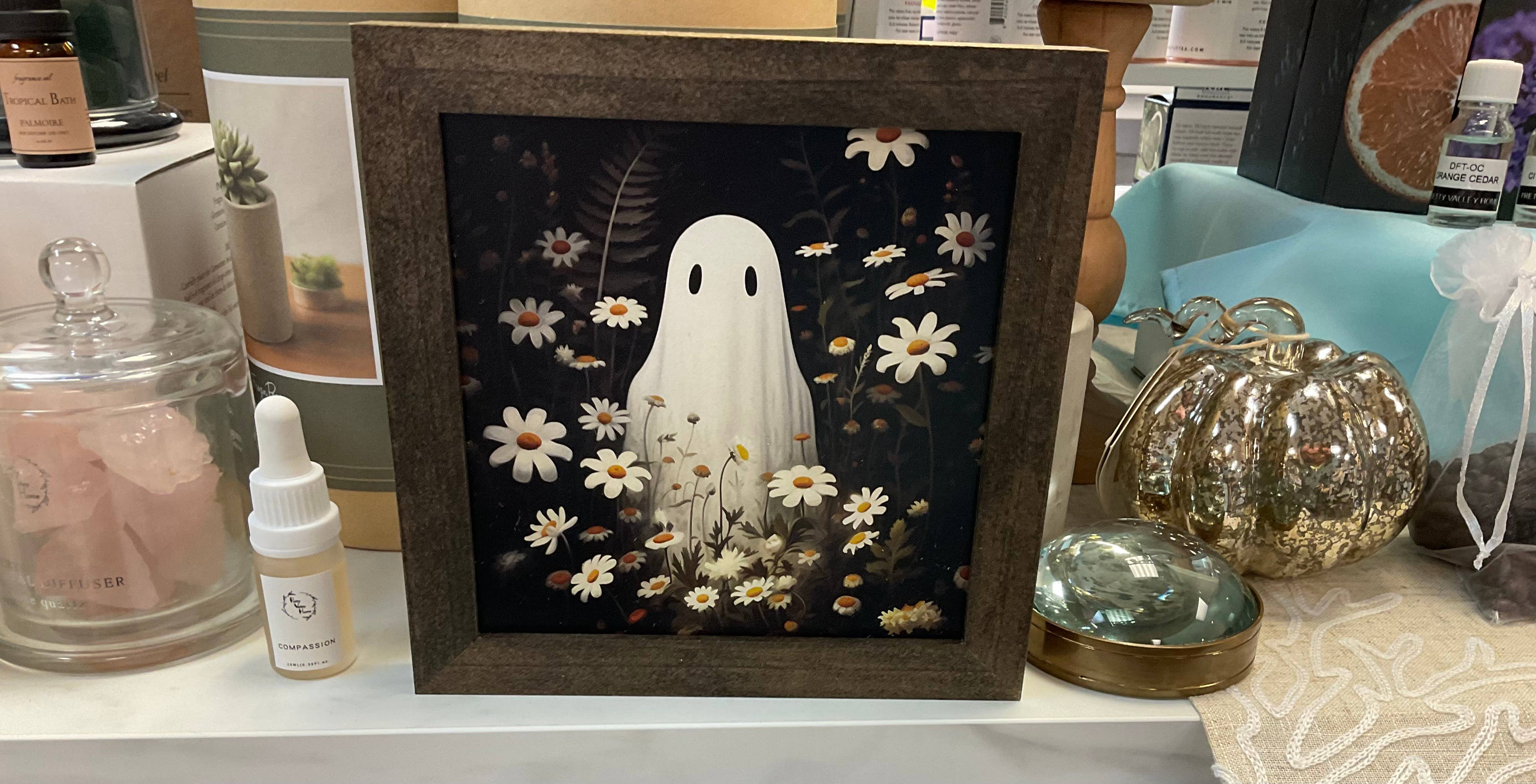 Add a touch of spooky charm to your seasonal displays with this handmade 7”x7” Halloween Sign! Featuring a high-quality printed design, this sign is perfect for shelves, tiered trays, mantels, walls or even spooky gift baskets. Whether you’re curating a Halloween collection or stocking up on fall décor, this piece brings just the right amount of whimsy and spooky vibes. - Product Details: - Sizes: 7” x 7” - 3 Frame Color Options: Dark, Medium and Natural - Printed design on wood with solid wood frame - Handmade with care – each piece may have slight unique variations - Lightweight and easy to display freestanding or wall-mounted (Comes with hanging hardware attached) - Perfect for Halloween displays, boutiques and shelf fillers Designed to capture the spirit of Halloween in a playful yet stylish way, this mini sign is a great seasonal addition for customers who love festive, handcrafted touches.