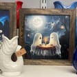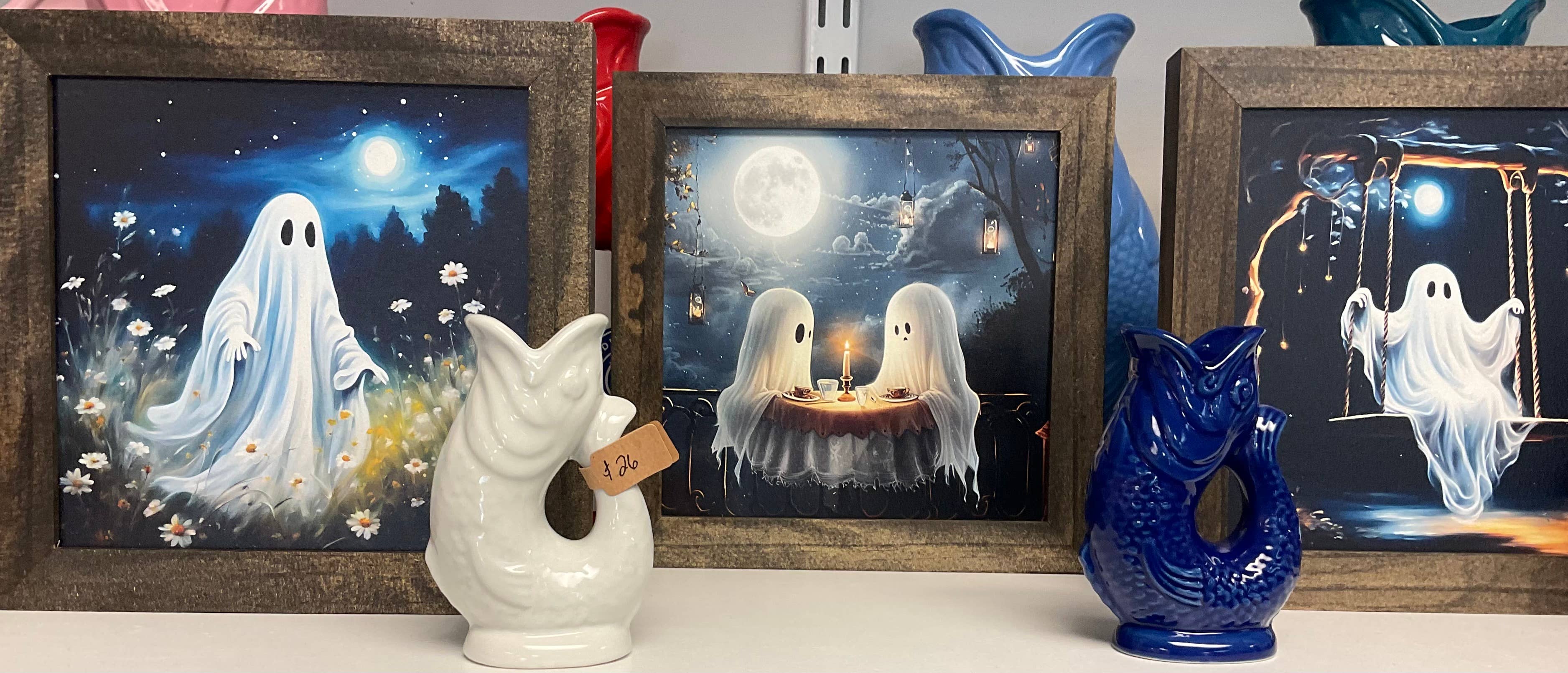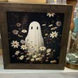 Ghost on Bench Printed Halloween Decor Framed Sign