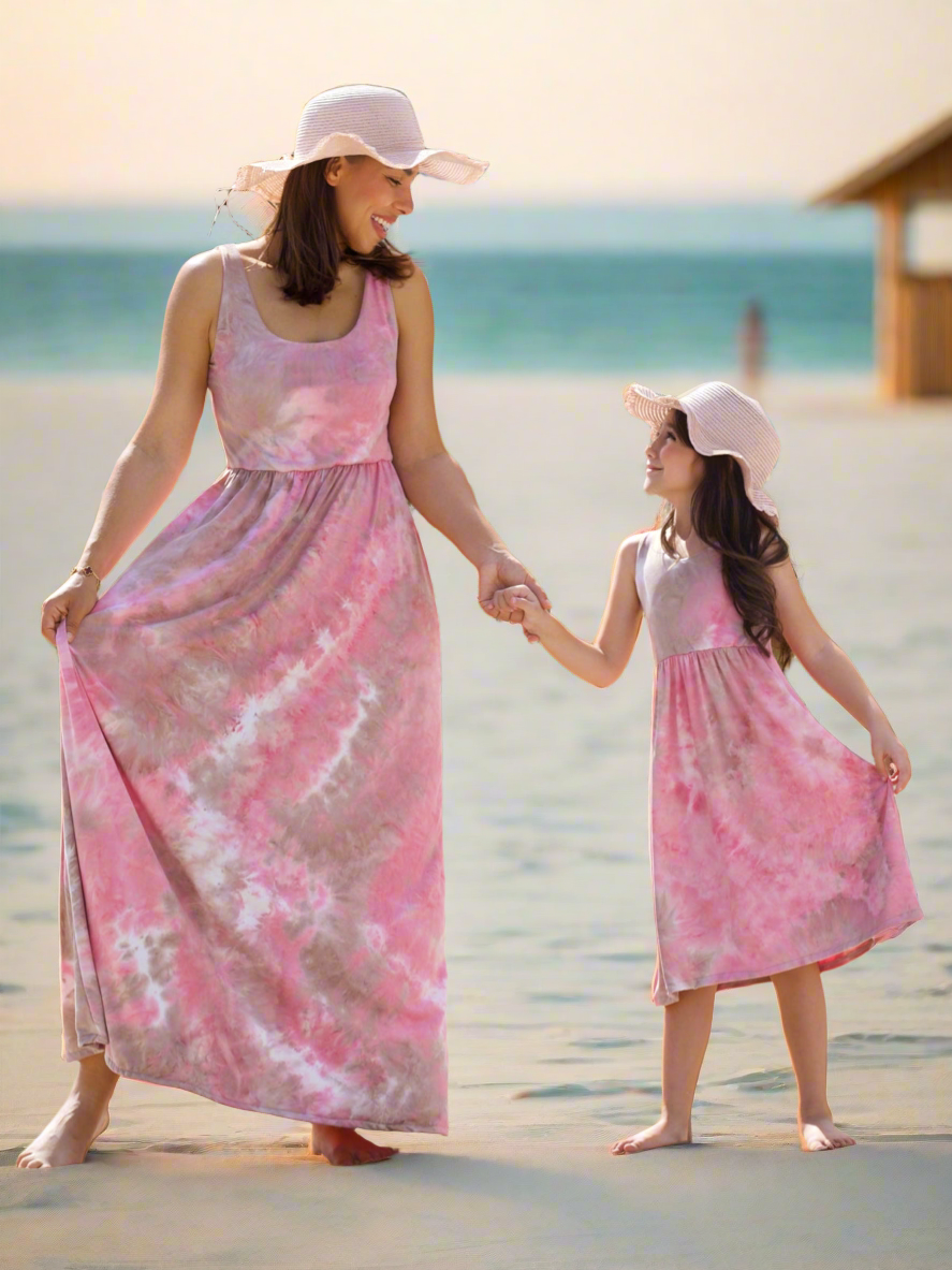 * Celebrate sweet moments together with the Mommy and Me Pastel Harmony Tiered Maxi Dresses. * Featuring a dreamy tiered design in soft ombré shades of blue, lavender, and pink, these sleeveless maxi dresses bring elegance and charm to your coordinated looks. * The flowy silhouette and lightweight fabric ensure comfort for both mom and daughter, making them perfect for family outings, vacations, or special celebrations. * Whether you're twirling at a party or strolling by the beach, these matching dresses are a beautiful way to create lasting memories in style! * Mom and girls' sizes are sold separately