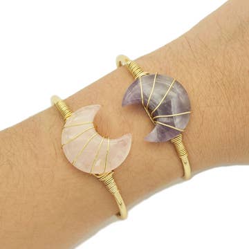 Wholesale Gemstone Moon Shape Wire Trapped Cuff bracelet, sku#LY25