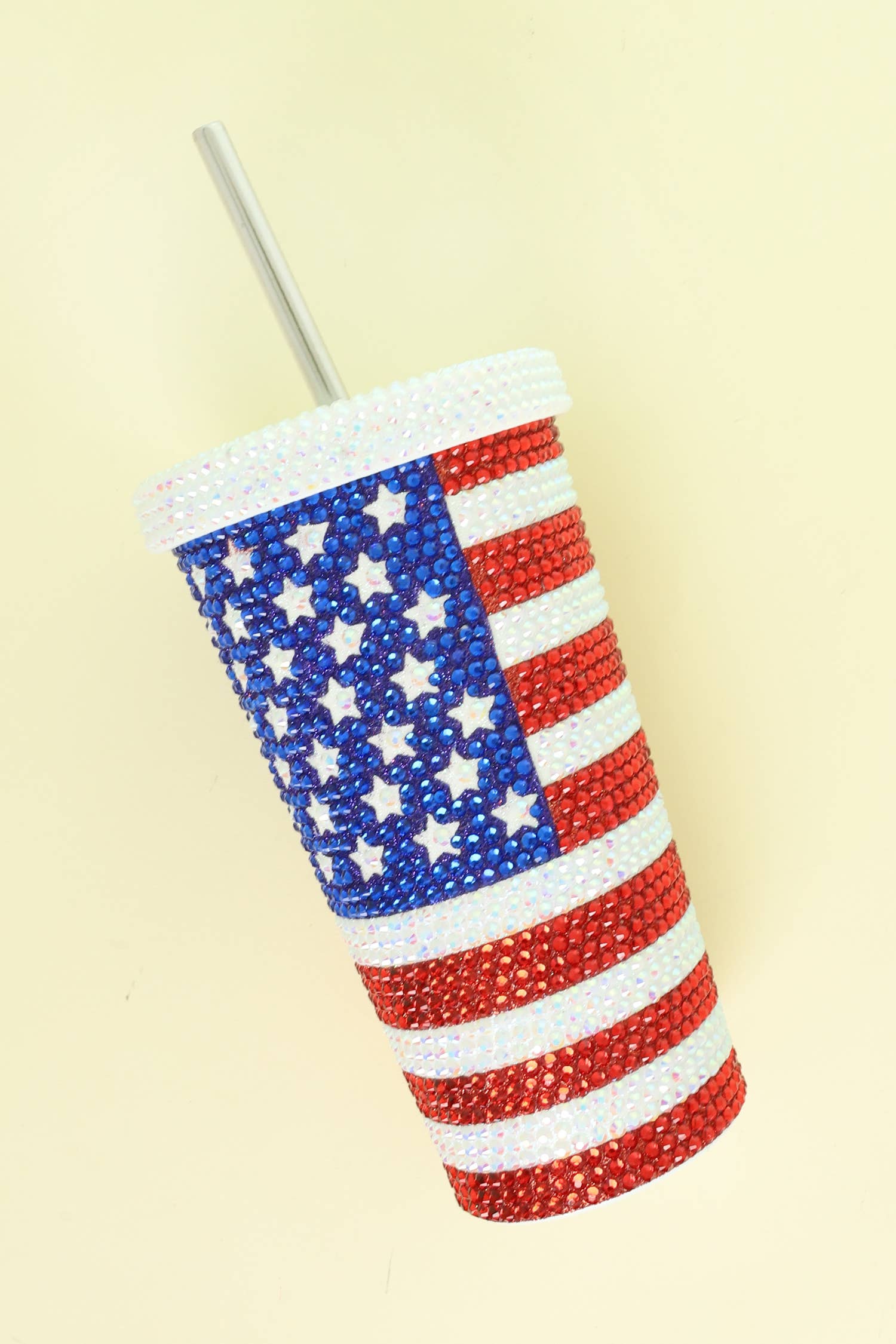 American Flag Bling Glitter Glam Rhinestone Embellished Double Wall Insulated Stainless Steel Tumbler Thermal Flask - 40 oz -1 x Plastic Straw -Capacity: 1200 ml (40 oz) -Twist Closure Clear BPA Free AS Plastic Lid Featuring 3 Positions (Straw, Wide Mouth and Full Cover) -Sturdy Handle (3.5" Handle Opening) -Straw Included (12" Long) -Hand Wash Only -Tumbler Dimensions: 10.5" * 5.5" * 4" -Case Dimensions: 11.25" * 5.75" * 4" (Individually packed and boxed) -80% Stainless Steel, 20% AS Plastic -CA Prop 65 Advisory -Hand Wash Only -DISCLAIMER: Any items that arrive with imperfect packaging i.e dented box cannot be filed as defective so long as the item itself is intact.