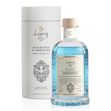 Amid infinite reflections of light, navigate in the sea of a fragrance in search of our roots. Persistence and longevity: Our room fragrances are formulated to offer an intense scent that lasts long, ensuring that your space is always welcoming and fragrant. Elegance and modernity: Thanks to their aesthetic shape, our diffusers harmoniously integrate with your home or workplace decor. Made in Tuscany: Our room fragrances are handcrafted in Tuscany by skilled artisans, using only high-quality ingredients and traditional production techniques. 100% Made in Italy Fragrances can be placed in preferred areas. For ‘Mare Infinito,’ the master perfumer recommends the following spaces: Kitchen Bathroom The size of the area where the diffuser is placed Temperature Direct sunlight exposure Air currents that can accelerate evaporation Olfactory Family: Fresh Mood: Energizing Best For: Kitchen -Bathroom Olfactory Pyramid: Marine Notes - Aromatic plants 500ml Sticks included