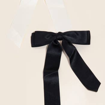 Enhance your hair accessory game with our Double Bow Long Hair Clip Set of 3. Featuring a doubled bow with doubled sash drop, this set adds a feminine and special touch to any look. With 3 carefully chosen colors, this set is perfect for everyday wear and any occasion. Alligator clips for easy on and off. Dimensions: approximately 5" x 12" for a clip Made in China