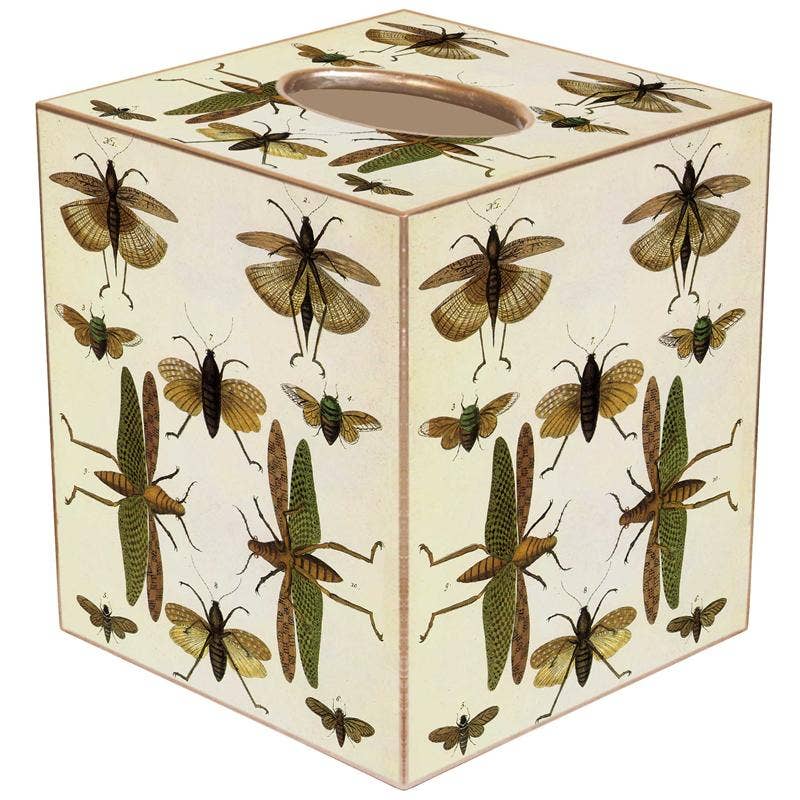 Our decoupage tissue box covers are handmade to order by our wonderful team in Houston, TX. They easily slide over any cubed tissue box cover. The artwork is hand-cut, decoupaged, and polished. Each tissue box cover is hand painted in gold or silver around the edges as the finishing touch. We offer 3 materials for the tissue box covers: 1. Papier Mache: $19 Dimensions: 5.5” H x 5” W x 5” L 2. Wood: $30 Dimensions: 5.25” H X 5” W X 5” L 3. Tin: $30 Dimensions: 5.75” H x 5.125” W x 5.125” L