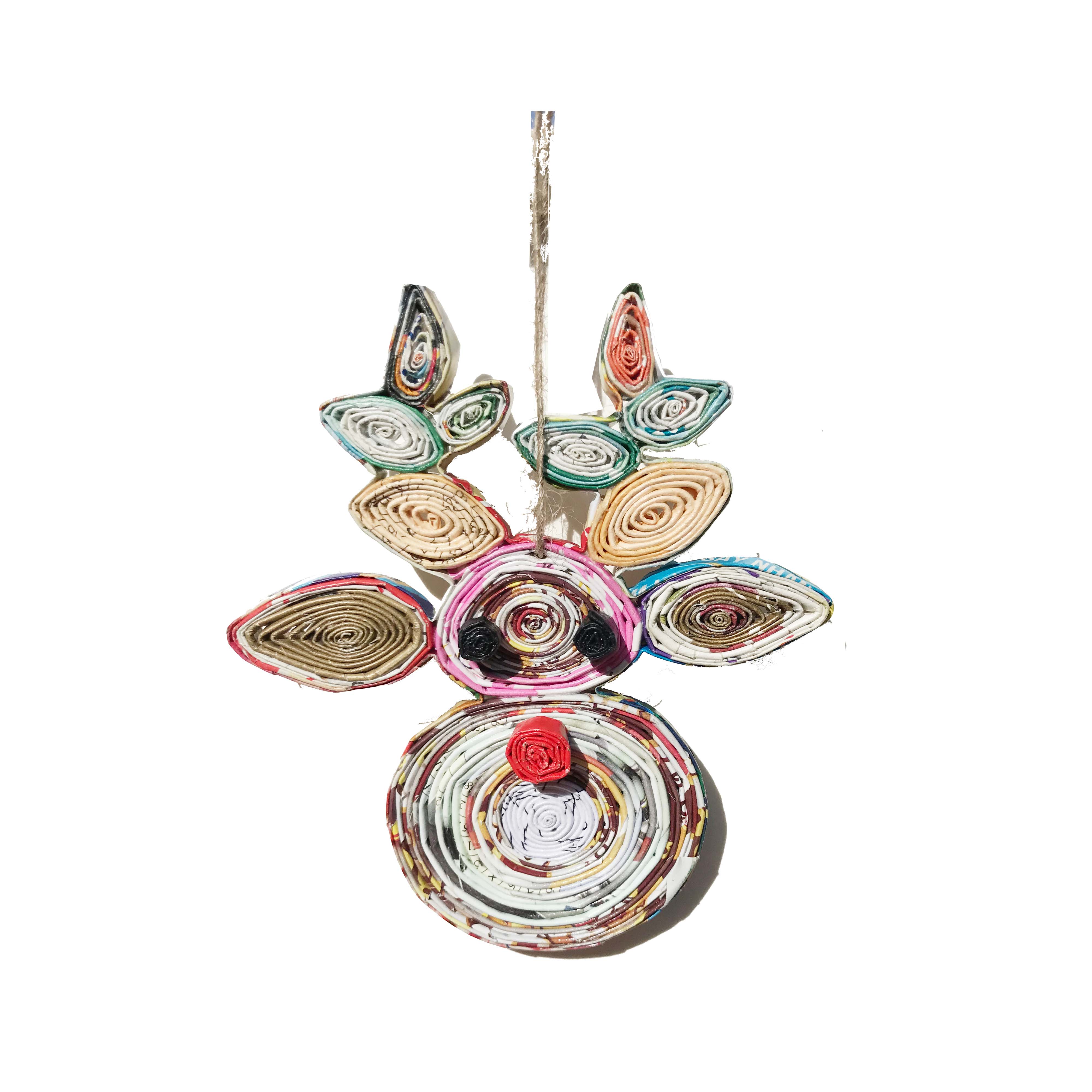 Recycled papers are rolled. Quilling techniques are used to create colorful ornaments. Unique personality of each artisan is expressed through the color and the quilling style of each ornament. Ornaments are handmade and no two are exactly alike. The color of each one varies due to the recycled paper. Usage: It makes a great addition to your Ornament Collections. It can be used as car charm and purse charm. Make your gift wrapping unique with an ornament as a gift tag. Nurture your creativity with tons of ideas for home decoration. Size: W: 3.75 inches; H: 3.75 inches; D: 0.25 inches.