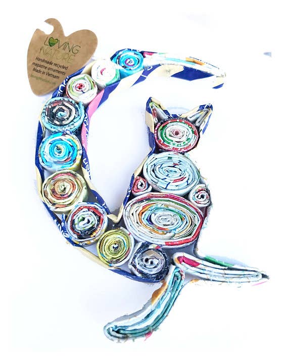 I will always carry the recycled magazine ornaments and cards. They are beautifully crafted and customers love them. They sell fast at my little wine shop, Sophie's Cellars in Duncans Mills, CA.