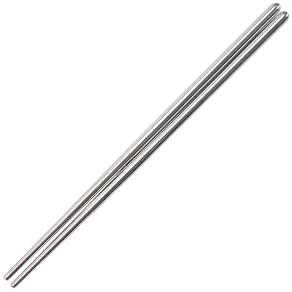 Stainless steel chopsticks with a twisted handle and a grooved tip for gripping food. Extra thick wall thickness for durability and highly polished finish. Chopsticks are 9 inches long. Dishwasher safe. Suitable for restaurant use. Made in China.