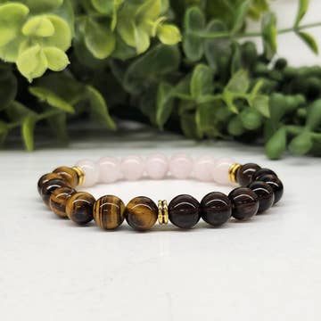 RELEASING THE PAST - Rose Quartz, Smoky Quartz, and Yellow Tiger Eye with Gold Color Metal Beads, Stretchable Bracelet, 8MM Beads, 7.5" Long. *Double strung for durability. *7.5" long. *These three stones help to bring about Releaseing Your Past *All natural semi-precious gemstones. -This picture is an representation of the type and quality of the gemstone you will be receiving. As you know, there are slight variations due to the natural character of this product. -All information about the metaphysical properties of the crystals is for reference only. It is a combination of research on how the gemstones have been used by different cultures today and throughout history. We do not recommend using crystals as a substitute for conventional medical or psychological treatment and do not claim they cure or heal medical conditions. Please always listen to the advice of your medical professional and only use crystals as a complimentary therapy in addition to medical treatment.