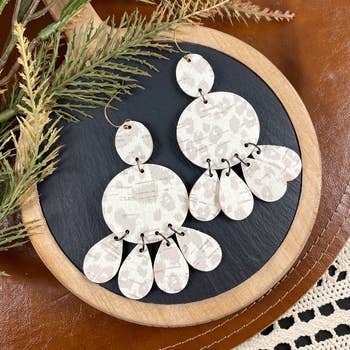 Walnut earrings with bamboo cutout. Measure approximately 1.5-2 inches. Hook is nickel and lead free.