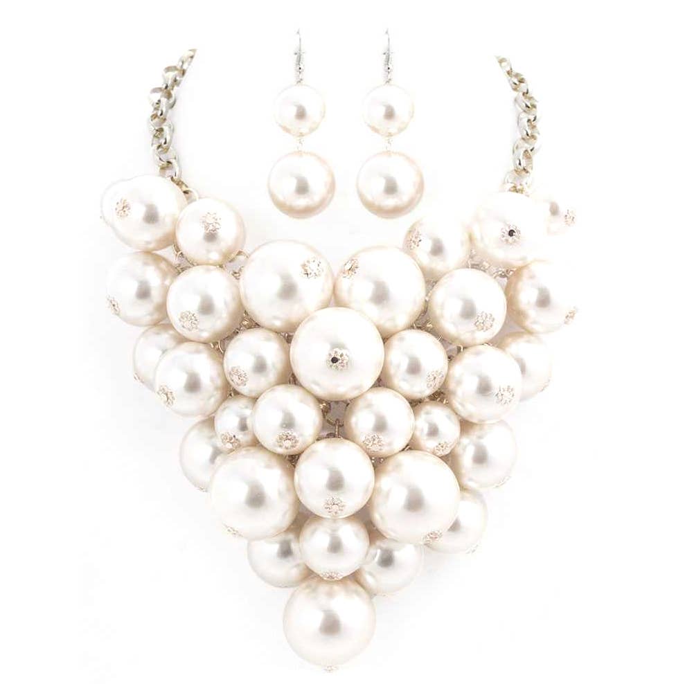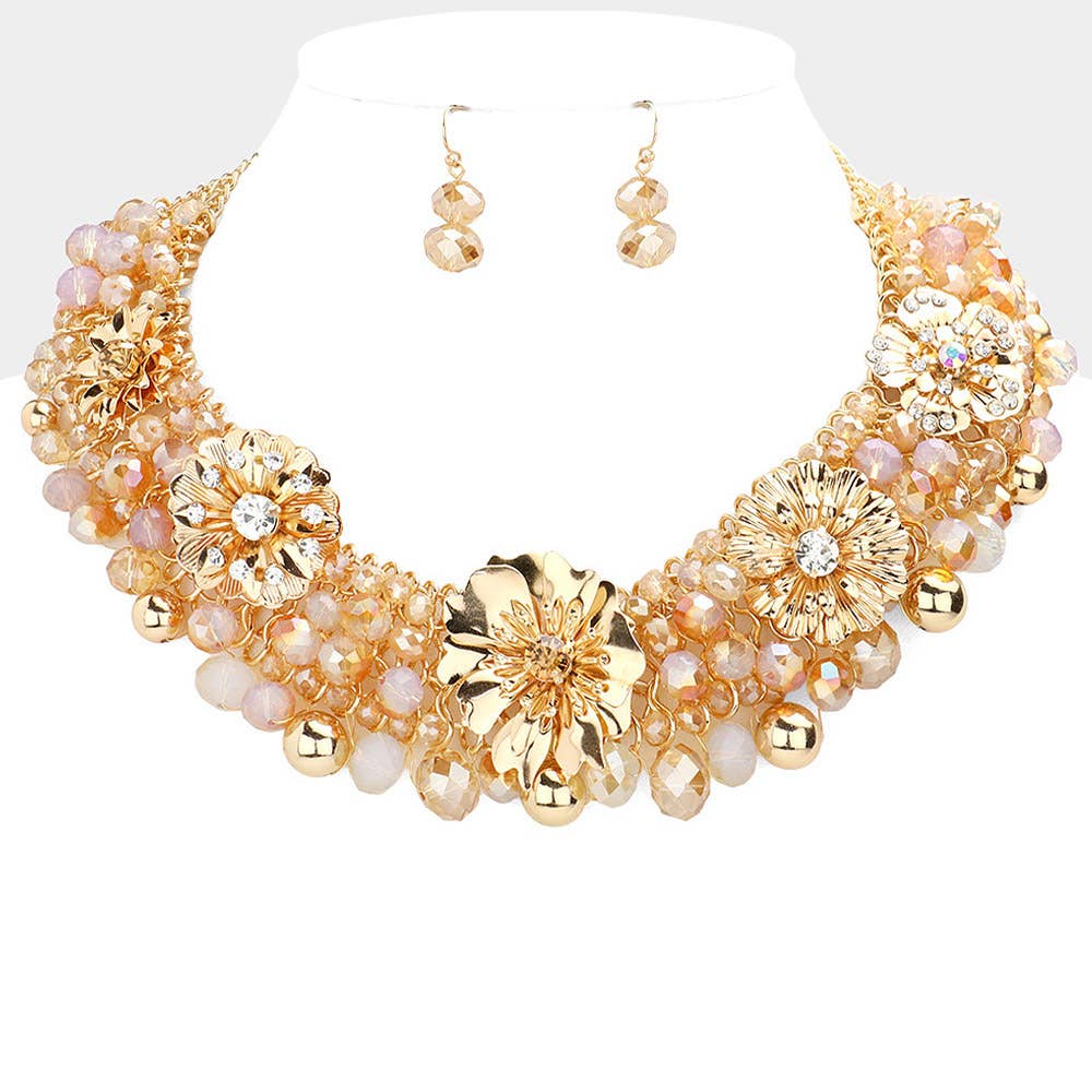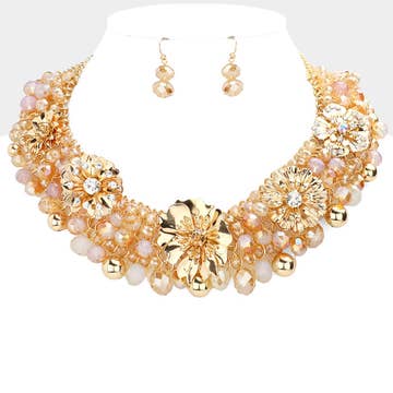 Resin & Pearl Flowers Statement Necklace Set