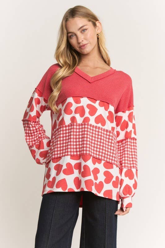 Floral Heart Plaid Graphic Wide Valentine's Day Top (S-XL)