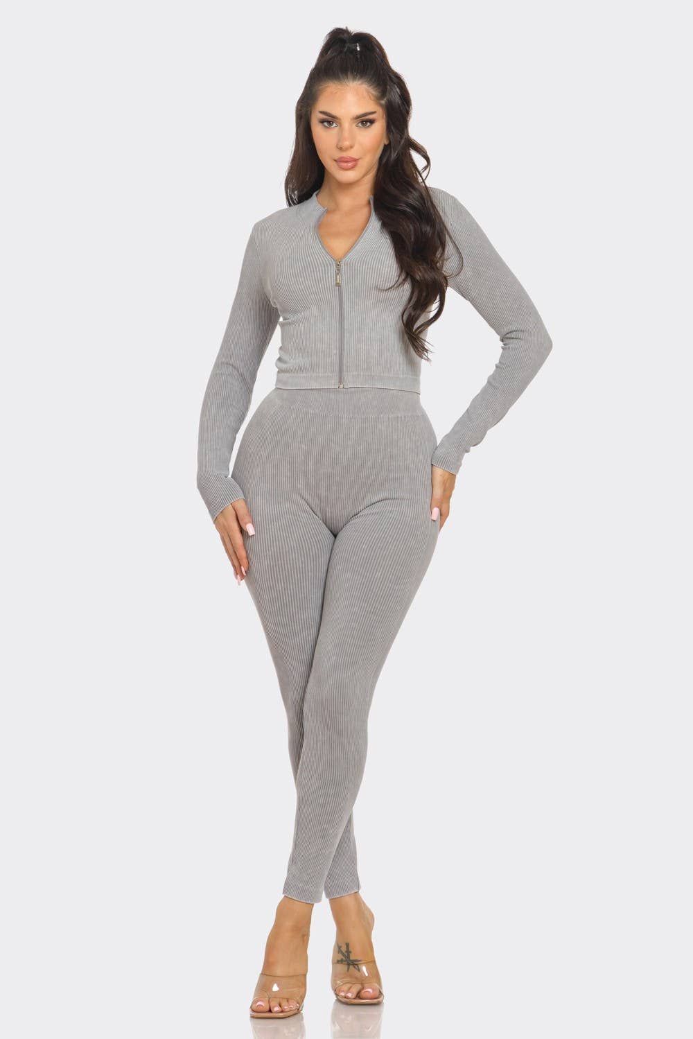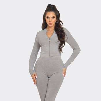 Front Zip Up Jacket And Leggings Set