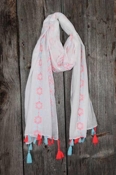SKU: 9878100007 Made in Indonesia Care Instructions: Machine wash Embellishment: Fringe Fabric: 100% Rayon Occasion Theme: Everyday Pattern: Abstract & Geometric Scarf Style: Rectangular Season: Core Product Language: English Dimensions: 142.2 x 35.6 cm (56 x 14 in) Packaging: Reduced Production: Ethically sourced
