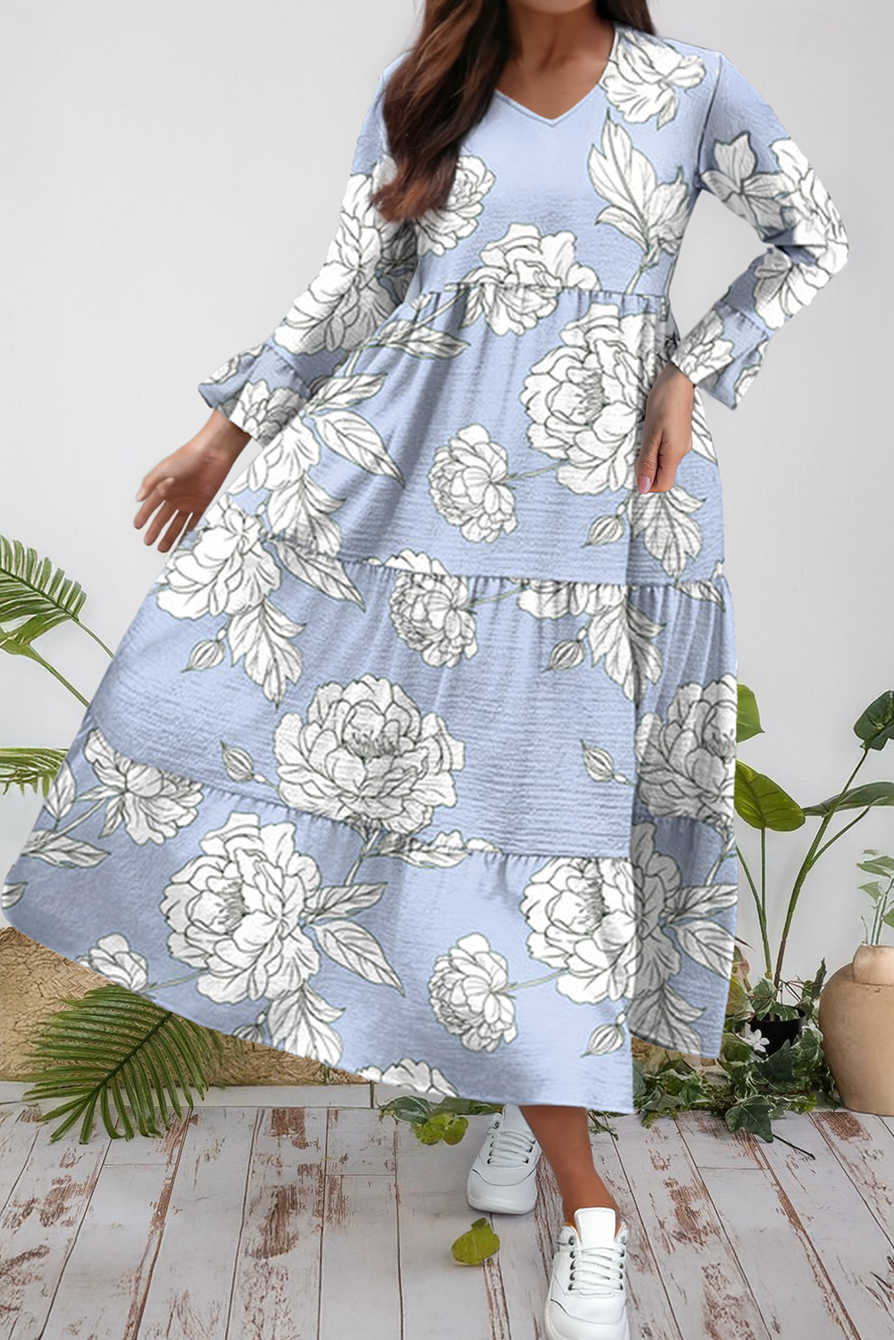 Retro Floral Printed Split Neck Maxi Dress (S-XL)