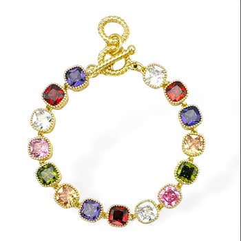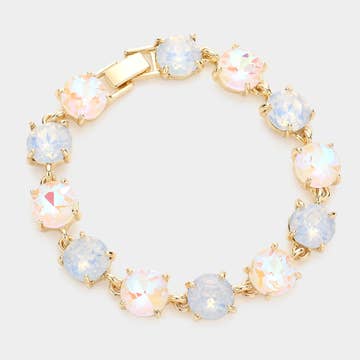 Neon Round Cushion Cut Crystal Glass Linked Bracelet 18K Gold Plated bracelet with cushion cut round glass crystal stone. We promise of exceptional quality! Glass Crystal - High Quality Shiny Glass Crystals define the unique beauty of each piece. QUALITY & STYLE - Classic, timeless, and versatile jewelry that you can wear whenever and wherever.