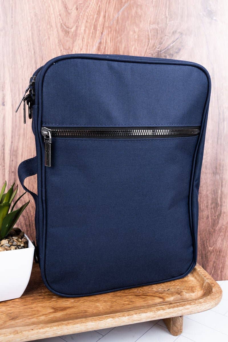 This beautiful Bible cover is perfect for keeping your Bible or Book safe from everyday wear and tear. The thick canvas material is sturdy and lightweight. A convenient carrying handle makes it easy to grab and go. The measurements for the outside of the cover are 10 inches (tall) x 7.5 inches (wide) x 2.5 inches (thick). It is the perfect size to hold Bibles and books measuring no larger than 9.5 inches (tall) x 7 inches(wide) x 1.5 inches (thick). The outside slip pocket will hold papers and small notebooks. There are 4 pen loops inside the front cover and a zipper pocket inside the back cover to keep accessories in place. A wrap around zipper allows your Bible or book to stay secure. The lay flat spine allows for comfortable reading. Makes a great gift for Christmas, Birthdays, Graduation or any special event or occasion. She is sure to love the unique and colorful floral pattern.
