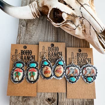 Wholesale Western Style Cowhide Cowhead Shape Stud Earrings - WJ