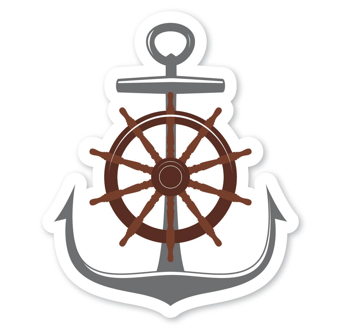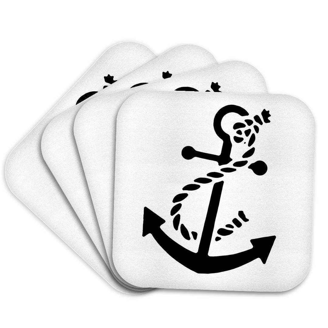 Wave and Anchor Coaster | Round Wooden Coaster Cork Bottom