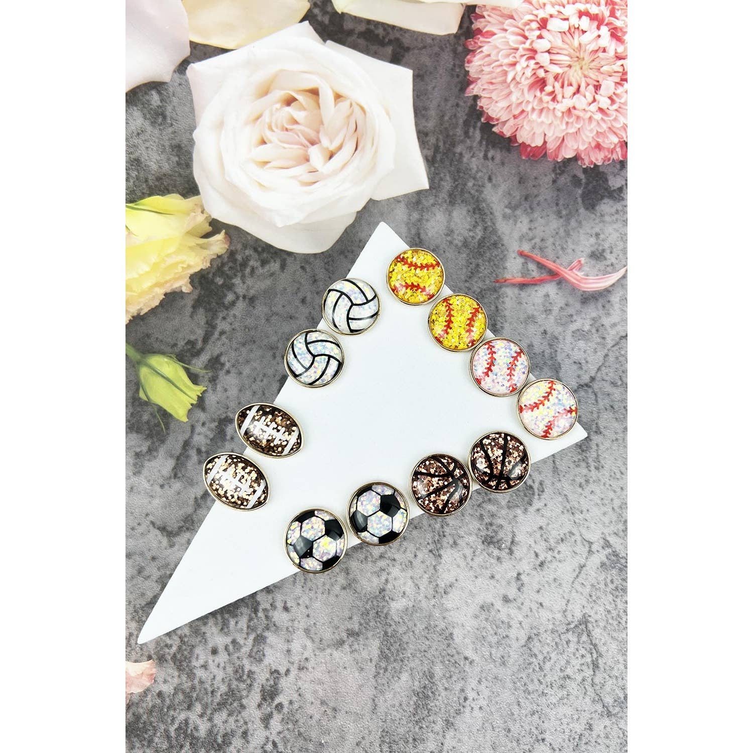 RECTANGULAR SHAPE SPORTS BALL STUD EARRINGS