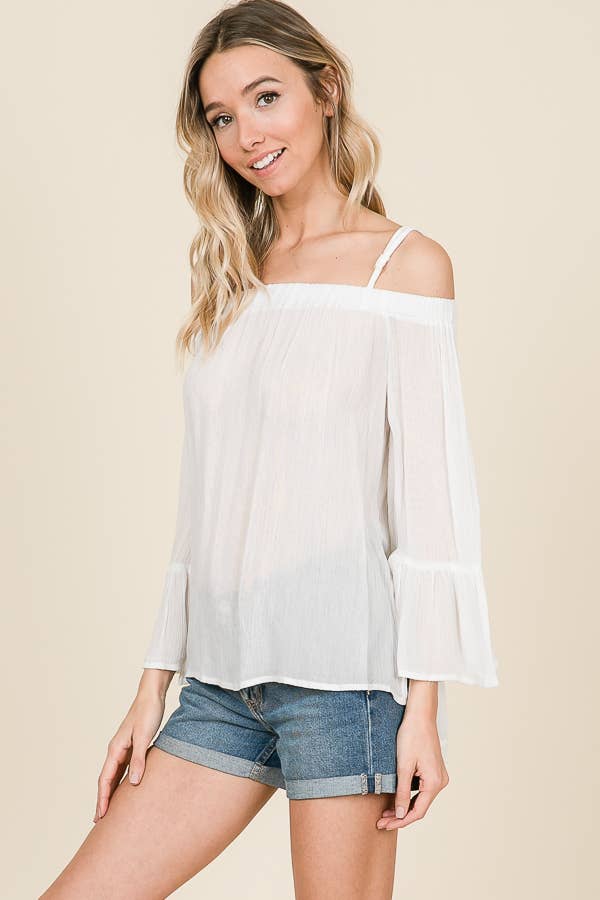 WHOLESALE COTTON MESH GRID SHORT SLEEVE TOP (12686/154109-WHITE)