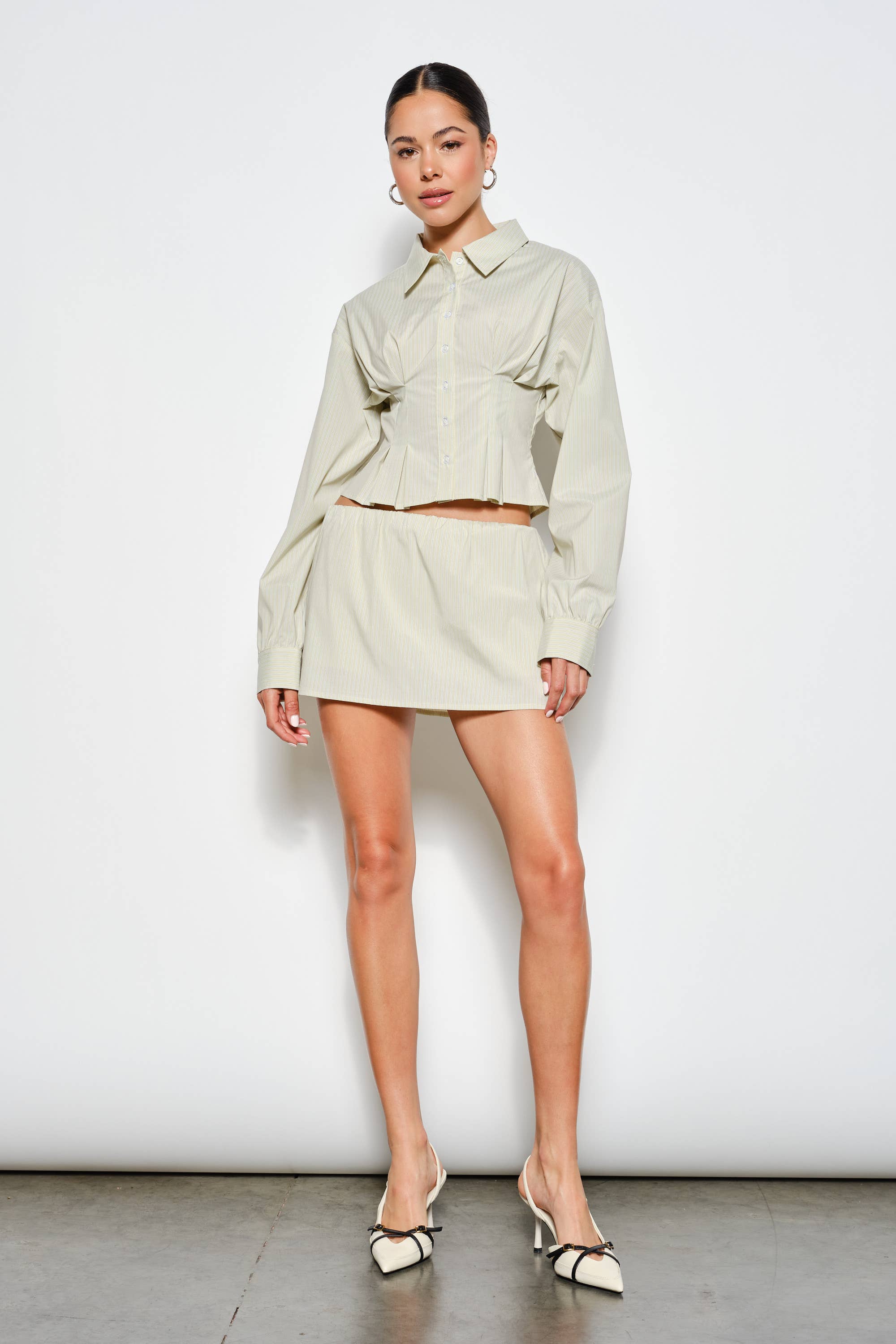 SKU: IPG2460S, IPG2460S, IPG2460S Made in China Aesthetic: Casual and Classic Care Instructions: Machine wash Embellishment: Pleat Fabric: 100% COTTON, CONTRAST 100% COTTON Occasion Theme: Baby Shower, Easter, and Everyday Occasion: Day Party and Everyday Pattern: Solid Rise Style: Regular Season: Spring/Summer Skirt & Dress Length: Mini Skirt Style: High-low and High-waisted Product Language: English