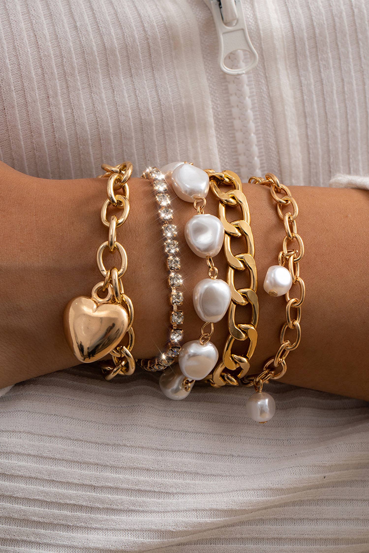 BOW PEARL RHINESTONE BAR STRETCH BANGLE SET | 80B137