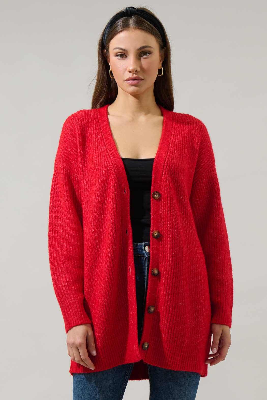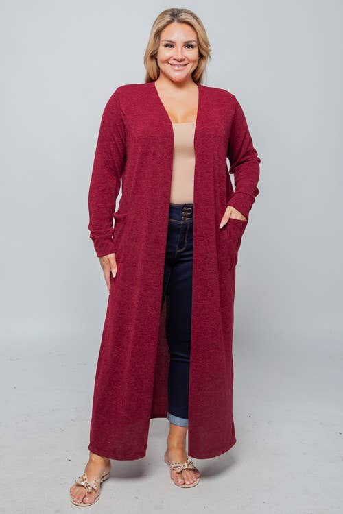 Premium Open Front Pocket Duster Cardigan Red