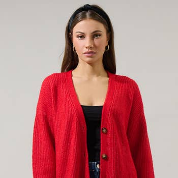 Wholesale Premium Open Front Pocket Duster Cardigan Red