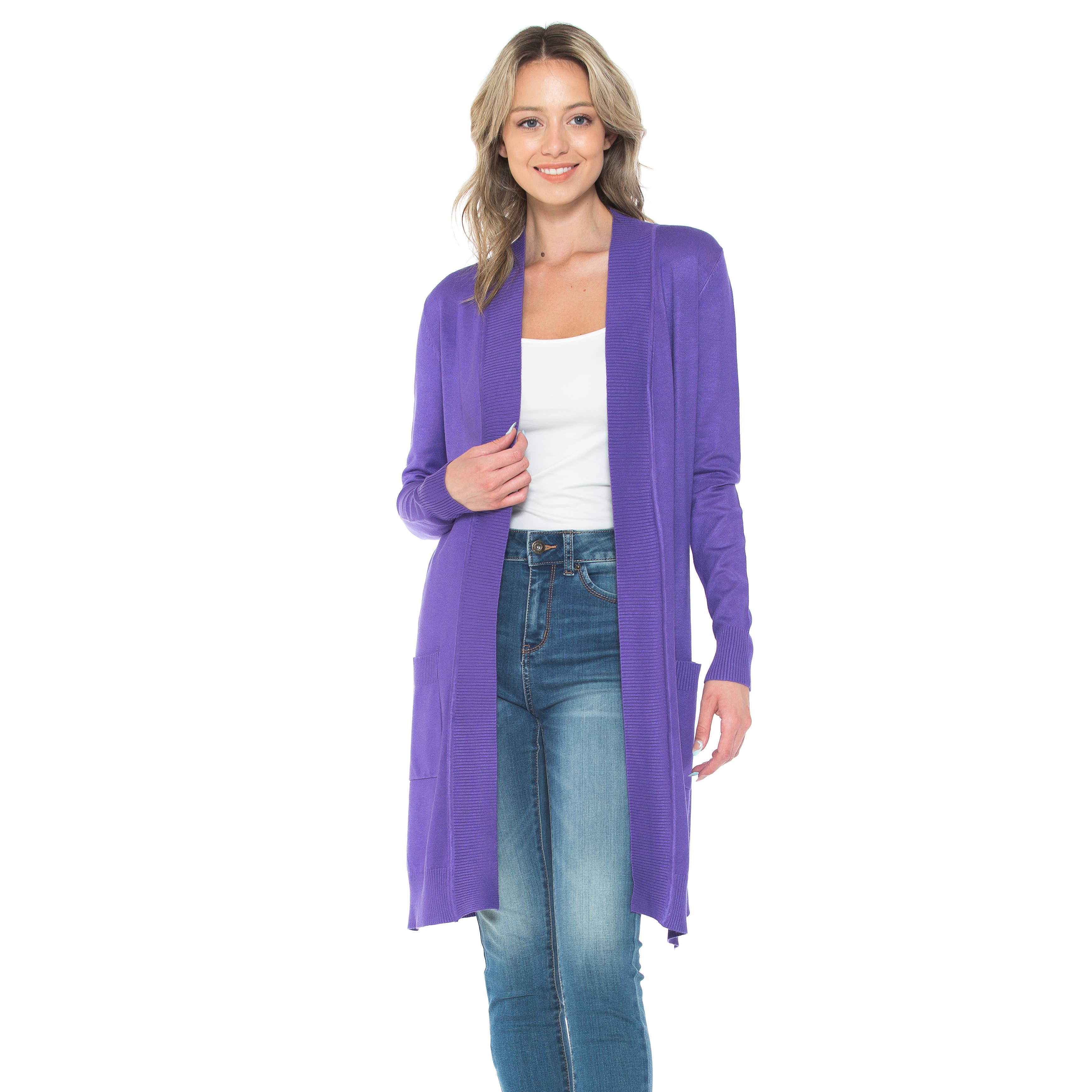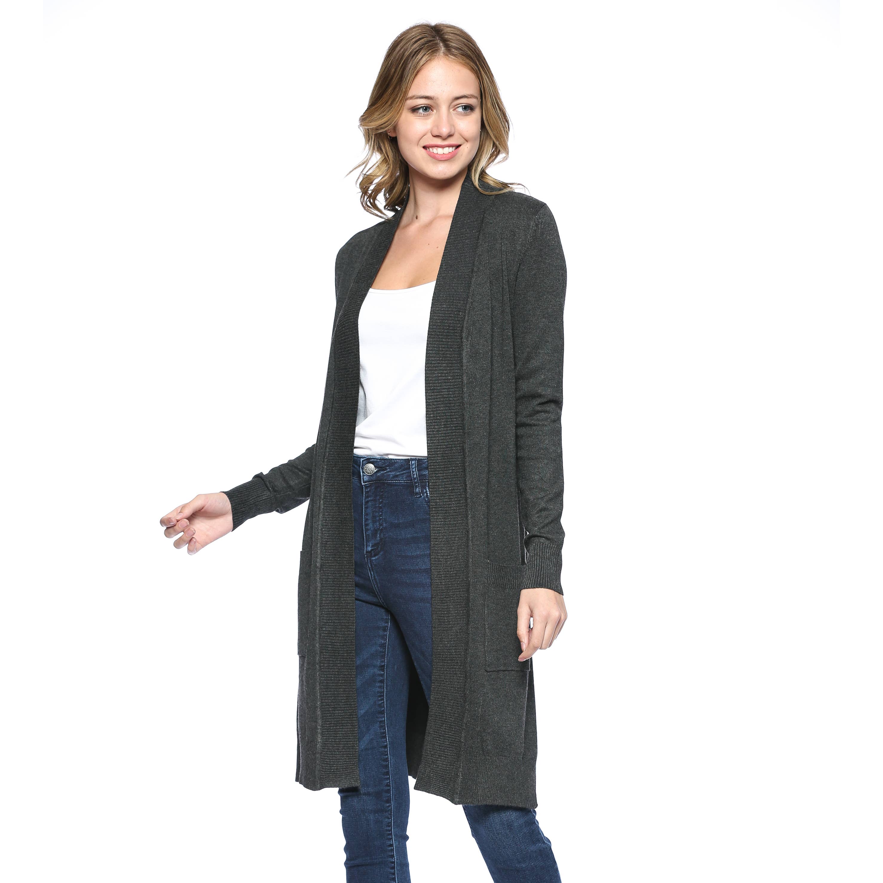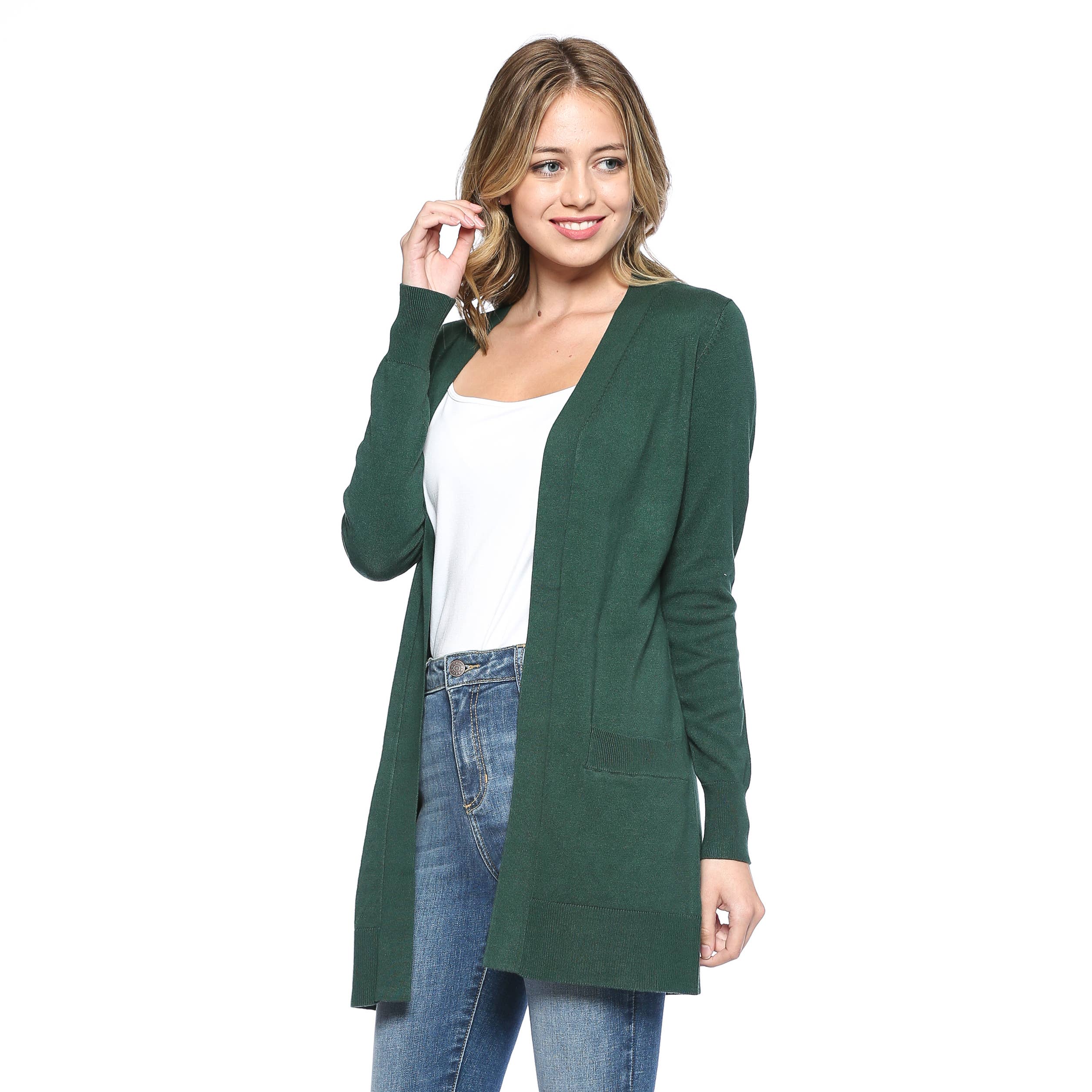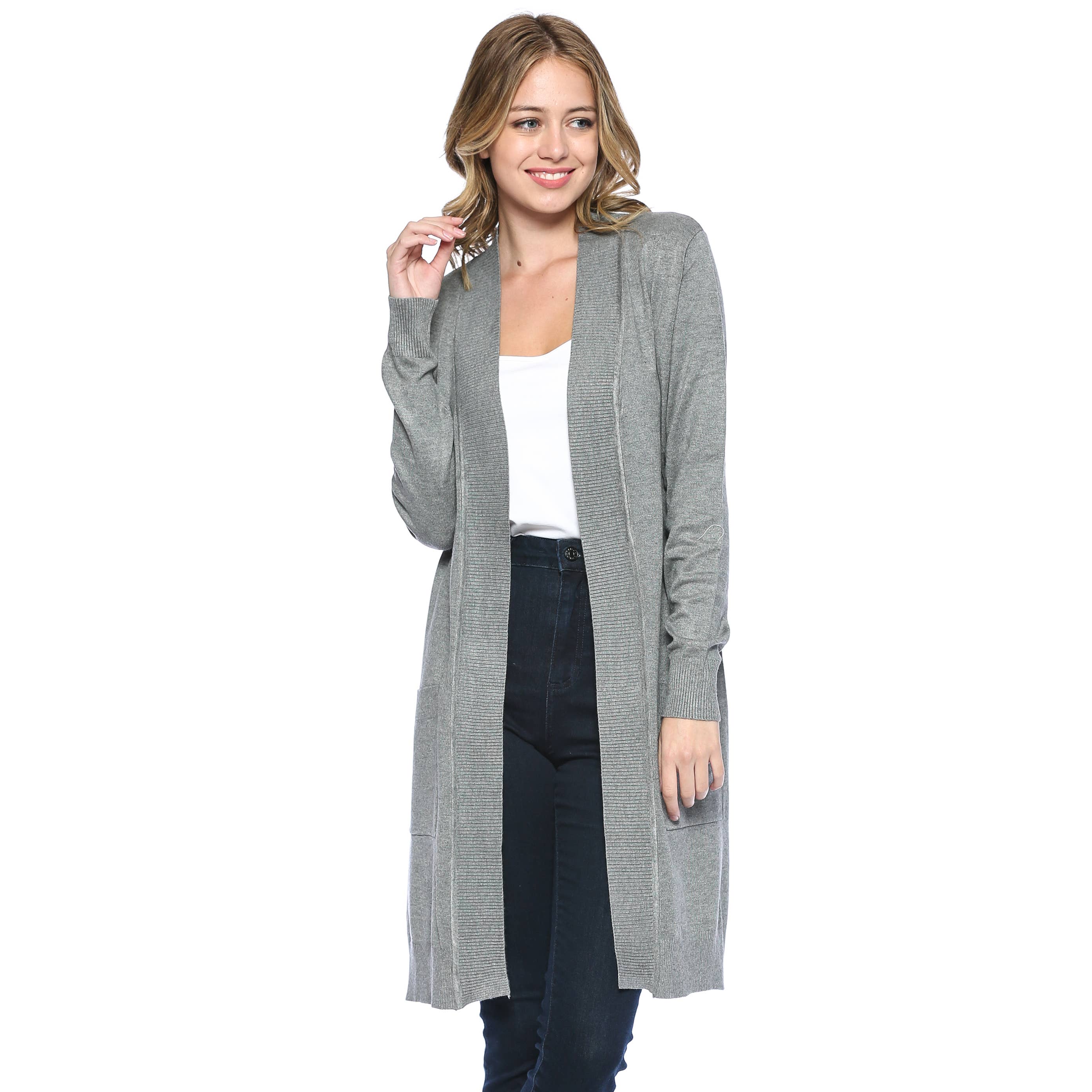Premium Open Front Pocket Duster Cardigan Black Model (5' 6" 135lbs Wearing Size Small) High Quality soft and stretch long line cardigan. Soft Easy Stretch Premium Materials 70% Viscose 30% Nylon Knee Length Long-Line Open Front Cardigan Ribbed Hemline, Side Pockets Hand Wash Warm, Do Not Bleach, Tumble Dry Low, Do Not Dry Clean MEASUREMENTS Small - Bust: 32 in. / Shoulder: 13.5 in./ Length: 37 in. / Sleeve Length: 23.5 in. Medium - Bust: 34 in. / Shoulder: 25.5 in./ Length: 37.5 in. / Sleeve Length: 23.75 in. Large - Bust: 35 in. / Shoulder: 14 in./ Length: 38 in. / Sleeve Length: 24 in. X-Large - Bust: 36 in. / Shoulder: 14.5 in./ Length: 38.5 in. / Sleeve Length: 24.5 in.