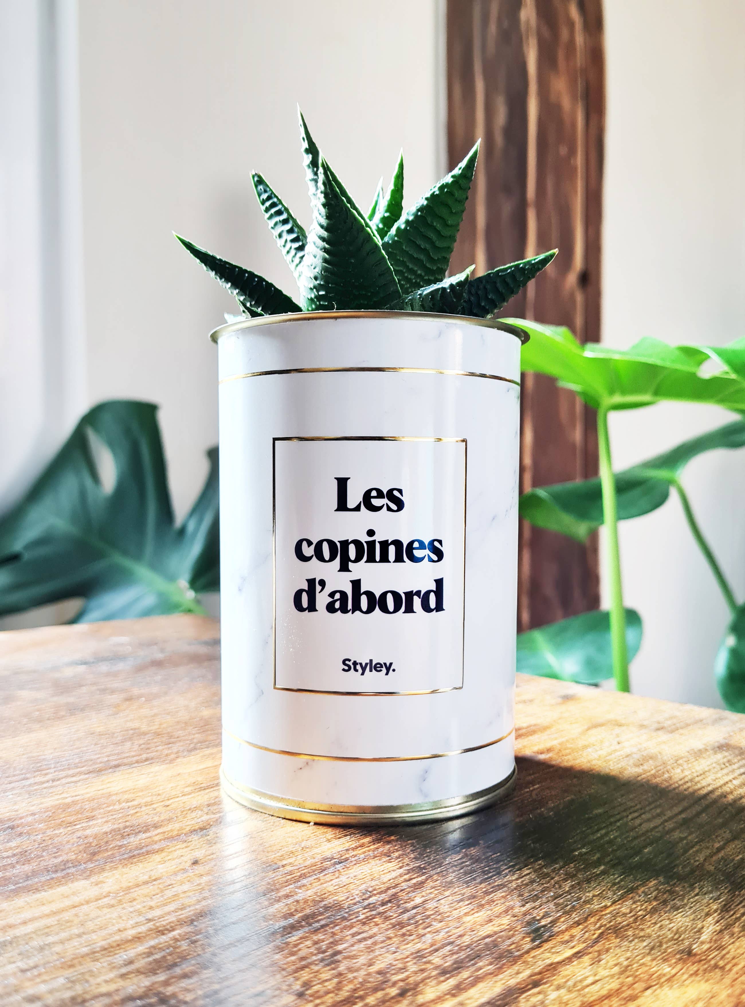 SUCCULENT IN A CUSTOM POT Discover Styley, the eco-cool plant brand with witty messages and original designs. Mix of plants: cactus or succulents Easy-to-care-for indoor plant Metal pot designed by Styley and 100% recyclable Each plant is unique, so height and shape may vary Hand-potted and packaged in our workshop in Chantilly Made in France. Plant shipped in its protective tube. Available in more than 700 stores across France and Europe — we’re not plastic plants!