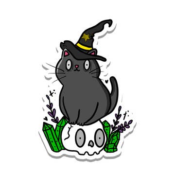 Cauldron Witch Cat Vinyl Sticker