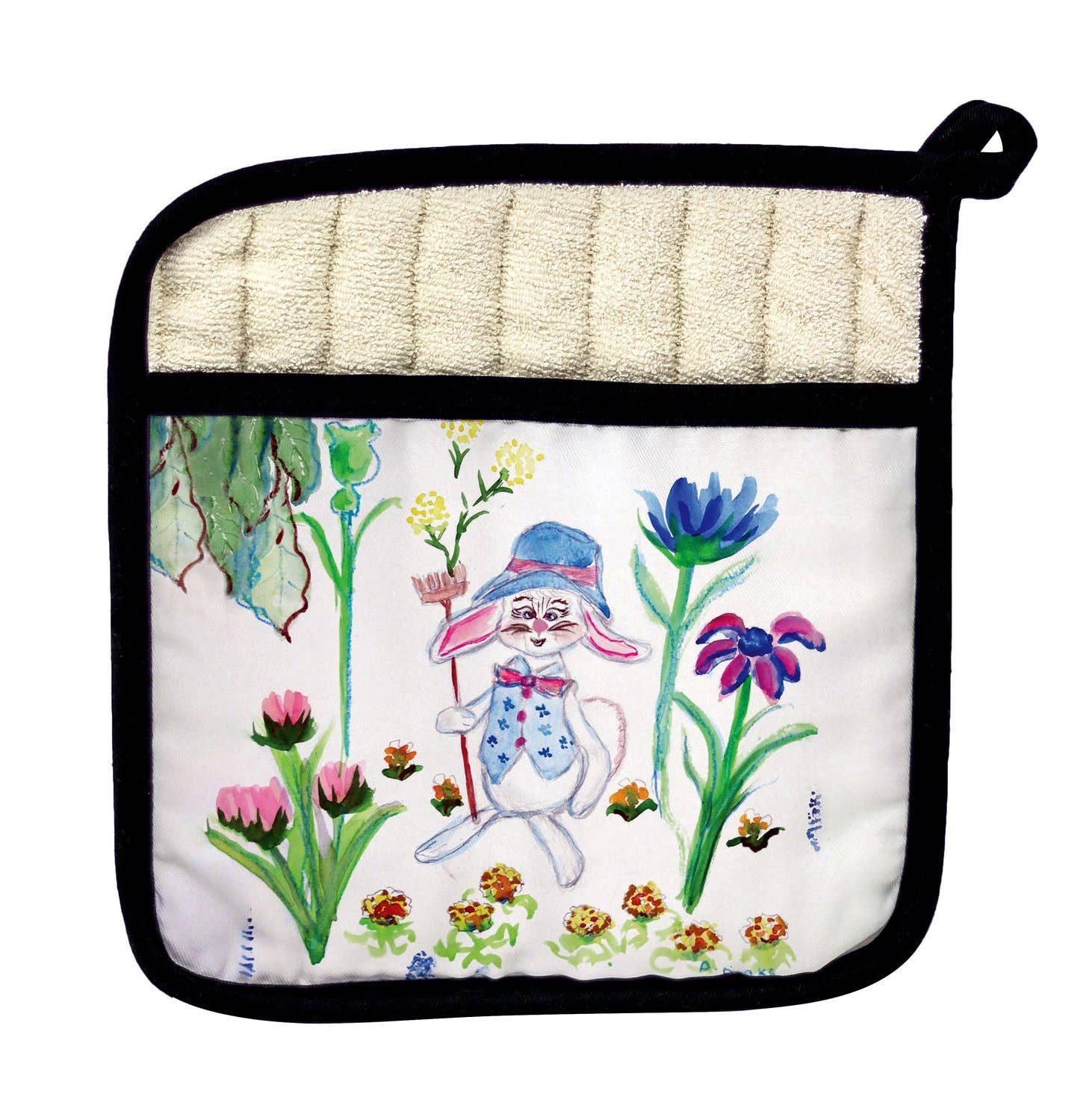 An ultra-absorbent drying mat from our Easter & Spring Collection displaying a collage of vintage easter bunny, duckling, and lamb designs. Seasonal drying mat features full color design on the 21 inch by 14 inch space to place items to dry with coordinating pastel green color on the back and trim. Our Vintage Easter drying mat includes a hanger at the top to display design or to air dry when not in use. Drying mat conveniently folds up for easy storage. Machine-washable for easy cleaning. A vintage Easter-themed kitchen accessory perfect for seasonal use.