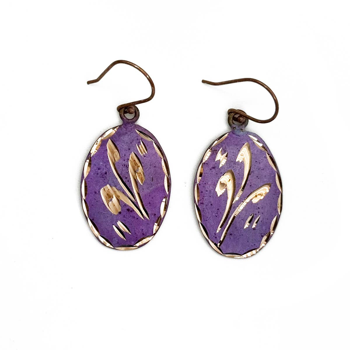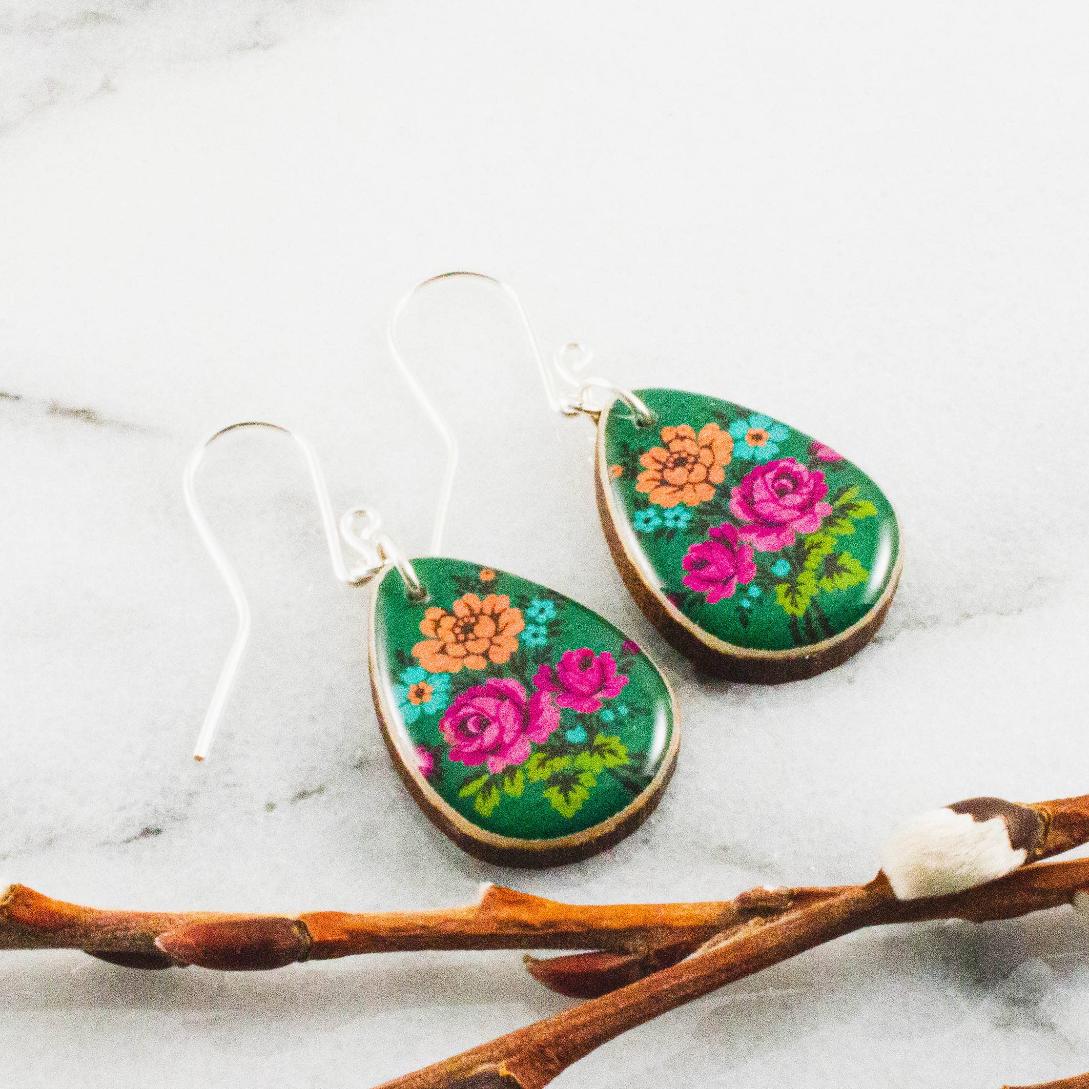 Reversed decoupage glass cabochon earrings in elegant antiqued bronze findings. *Nickel-free bronze ear wires and backs. *Dangle Earrings are about .75" by 1.5" with accent bead. *Image area 5/8" (16mm about the size of a dime). *Earrings arrive carded inside a chipboard gift box with the Diving Iguana logo. If you would prefer your earrings arrive without this packaging, please let us know. Divine Iguana Earrings are packaged so that their backing cards fit neatly inside our chipboard gift boxes. By resting the box inside its lid at a slight angle, Divine Iguana earrings can be displayed easily on counters or shelves without any additional materials or props needed.