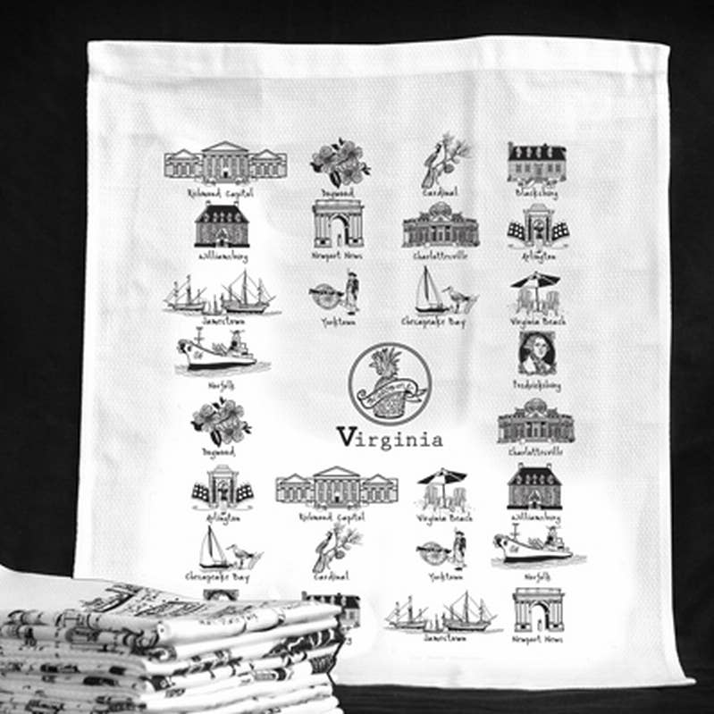 Order Details * REORDER MINIMUM: Order total must reach $250.00. Mix and match products and designs. * RETAIL PRICE: $25 Geography Dish Towels * HOW THEY'RE MADE: Each dish towel is made of hand-loomed cotton and the design is printed using the labor-intensive, HAND-swipe silk-screen process with 12 colors (that's 12 screens for each towel!). The design is then framed with a HAND-embroidered border. Our towels are finished with three cheery woven stripes down the sides and hand-dyed rick-rack at the top and bottom, adding a charming vintage touch. * WHAT MAKES THEM EXTRAORDINARY: Each towel is delightfully presented in a fab organdy reusable pouch - perfect for gifting! * SELLING TIPS + TRICKS: Carry all 50 states and at least 10 hot spots. Customers love to find their hometown, collect the places they've been, or give the gift of a loved one's favorite place. Stock a variety and watch your sales grow! Check out our dish towel spinner to learn how you can create a highly profitable investment in just 1 square foot of your store. Also be sure to check out our dish towel suitcase display - complimentary with your opening order! Product Details * 20" x 29" * Packaged in organdy pouch * 100% cotton * Machine wash cold and line dry * Designed in Petaluma, California | Made in India