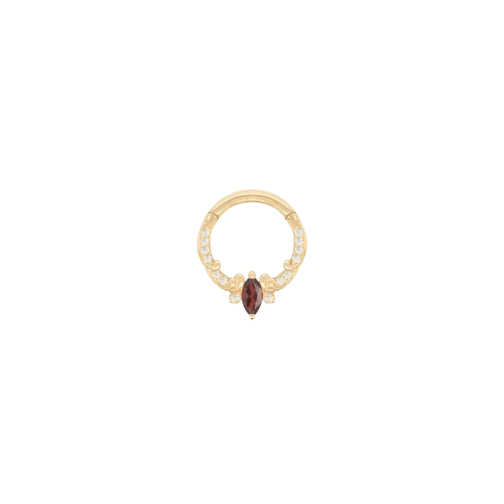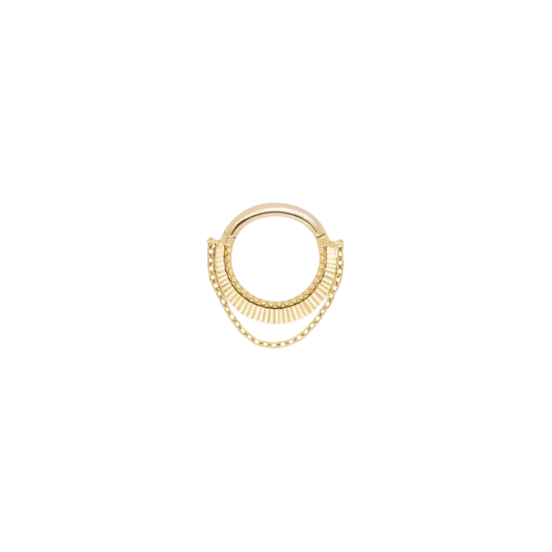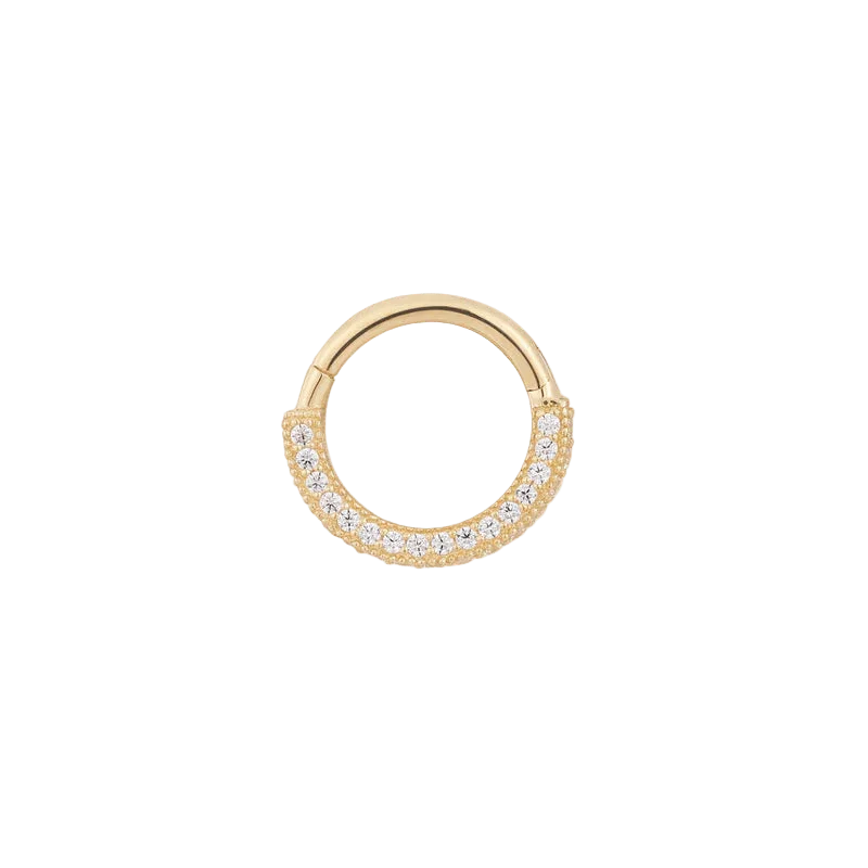 A mesmerizing blend of elegance and radiance. Meet Lillia, the captivating opal clicker crafted from luxurious solid 14K gold. Adorned with a stunning array of genuine Australian opals, this enchanting piece catches the sunlight, reflecting a brilliant spectrum of colors and adding an extraordinary sparkle to your piercings. Perfectly suited for septum, daith, and helix piercings, the APP-certified, hypoallergenic clicker includes a secure hinged clasp for effortless and comfortable wear. ✨ Product Details ✔ Material: Solid 14K Gold (Yellow, White & Rose) ✔ Gemstones: (10) 2 x 1.2mm Genuine Australian Opals ✔ Gauge & Sizes: 16G (1.2mm), available in 1/4" (6mm), 5/16" (8mm), and 3/8" (10mm) ✔ Hinged Clicker Design – Easy & Secure Closure ✔ Sold as a Single Piece ✔ Lifetime Guarantee Against Manufacturing Defects 💎 Why Choose This Piece?
