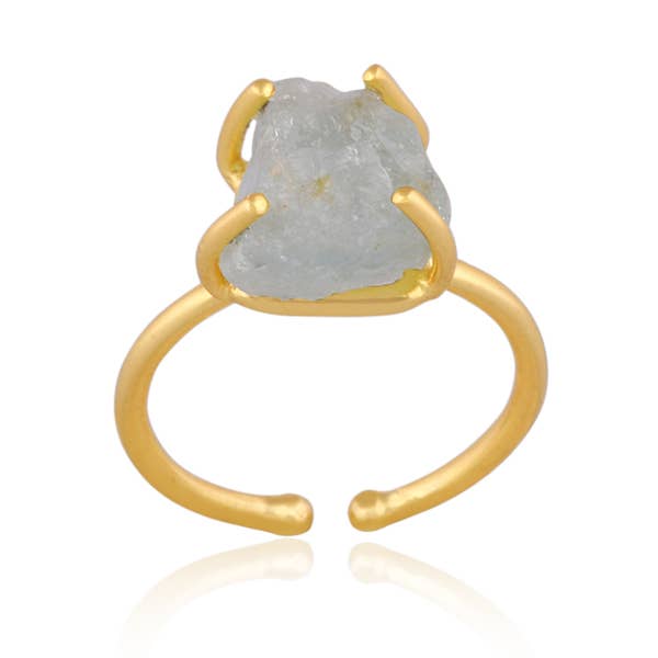 Raw Turquoise Crystal Ring in a lovely natural rough shape, handmade and artisanal, ethically created and handmade from natural stones of India. The Raw crystal is between 1-1.5cms and is set on a solid Gold Plated adjustable base for all ring sizes between J to T. The Crystal Ring will be sent packaged in a BellaMira gift box along with an info card on the crystal. ~~~~~~~~~~~~~~~~~~~~~~~~ We only wholesale to bricks & mortar retail shops and businesses. We do not allow selling on third-party platforms such as Amazon, ebay or etsy.