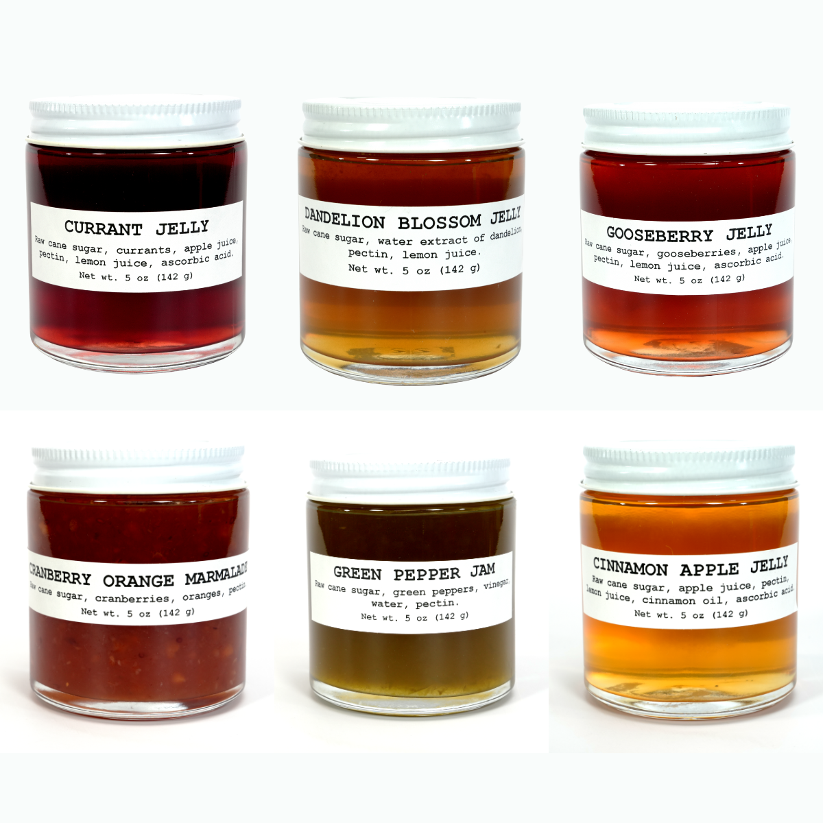 Made in West Virginia, this assortment of 12 gourmet jams and jellies are hand-picked by the chef. Each and every jar is filled with all-natural goodness, low sugar, and unusual flavors. You’re sure to find something surprising! We bundle our mini jams and jellies for an array of mouth-watering, nutritious delights. Our 12 assortments are hand-picked among these unusual, yet tasty creations: * Berry Berry Berry Jam * Blackberry Jam * Blueberry Cinnamon Jam * Cinnamon Apple Jelly * Cranberry Orange Marmalade * Cranberry Rhubarb Jam * Currant Jelly * Dandelion Blossom Jelly * Elderberry Apple Jelly * Elderberry Grape Jelly * Green Pepper Jam * Hot Pepper Jam * Lavender Jelly * Peach Nutmeg Jam * Pumpkin Butter * Ramp Jam * Raspberry Jam * Raspberry Rhubarb Jam * Rhubarb Apple Jam * Road Kill Jam * Rose Geranium Jelly * Rose Petal Jelly * Rosemary Thyme Jelly * Sassafras Jelly * Spice Tomato Jam * Strawberry Jam * Strawberry Banana Jam * Strawberry Rhubarb Jam All of Smoke Camp Crafts’ jams and jellies are made with low sugar, no additives or preservatives, West Virginia Grown and/or organically grown produce, all-natural pectin and so much love, you can taste it.