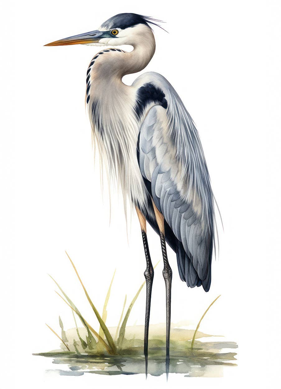 Great Blue Heron on Branch Watercolor Painting